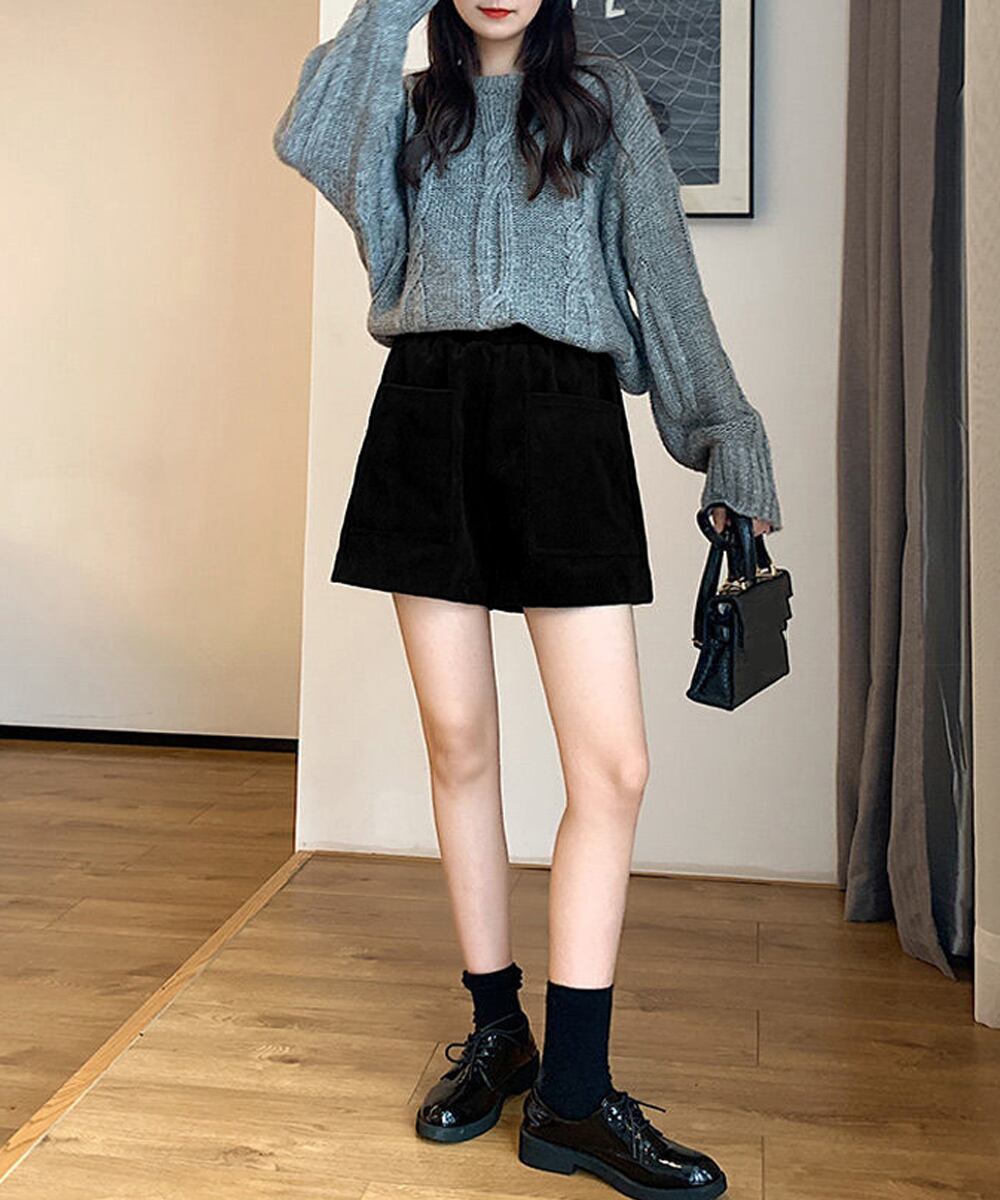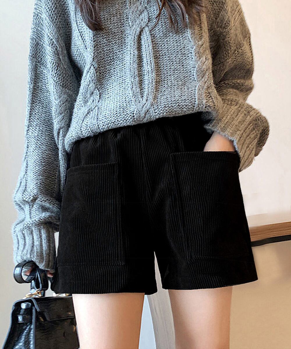 着やせショーパン冬 ミニ丈パンツ細見え カジュアル半ズボン