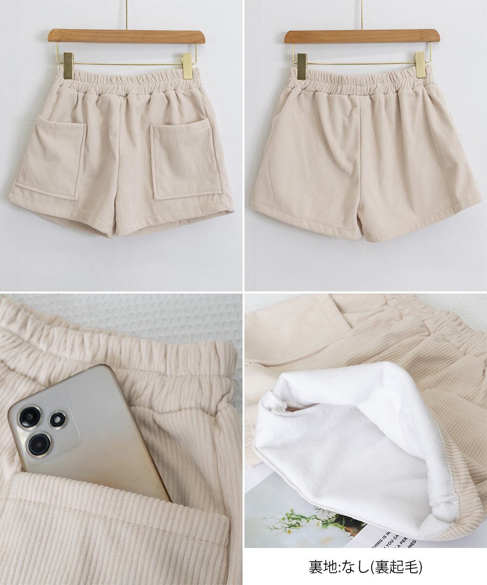 フロントポケットがアクセントになったコーデュロイショートパンツ。