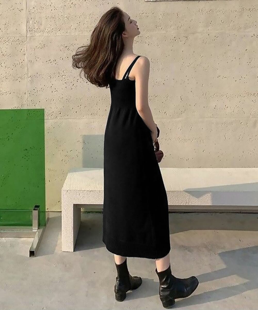 カーディガン ワンピース キャミソールドレス ショート丈 ボタン セーター 着やせ セクシー 大人 お洒落 オルチャン