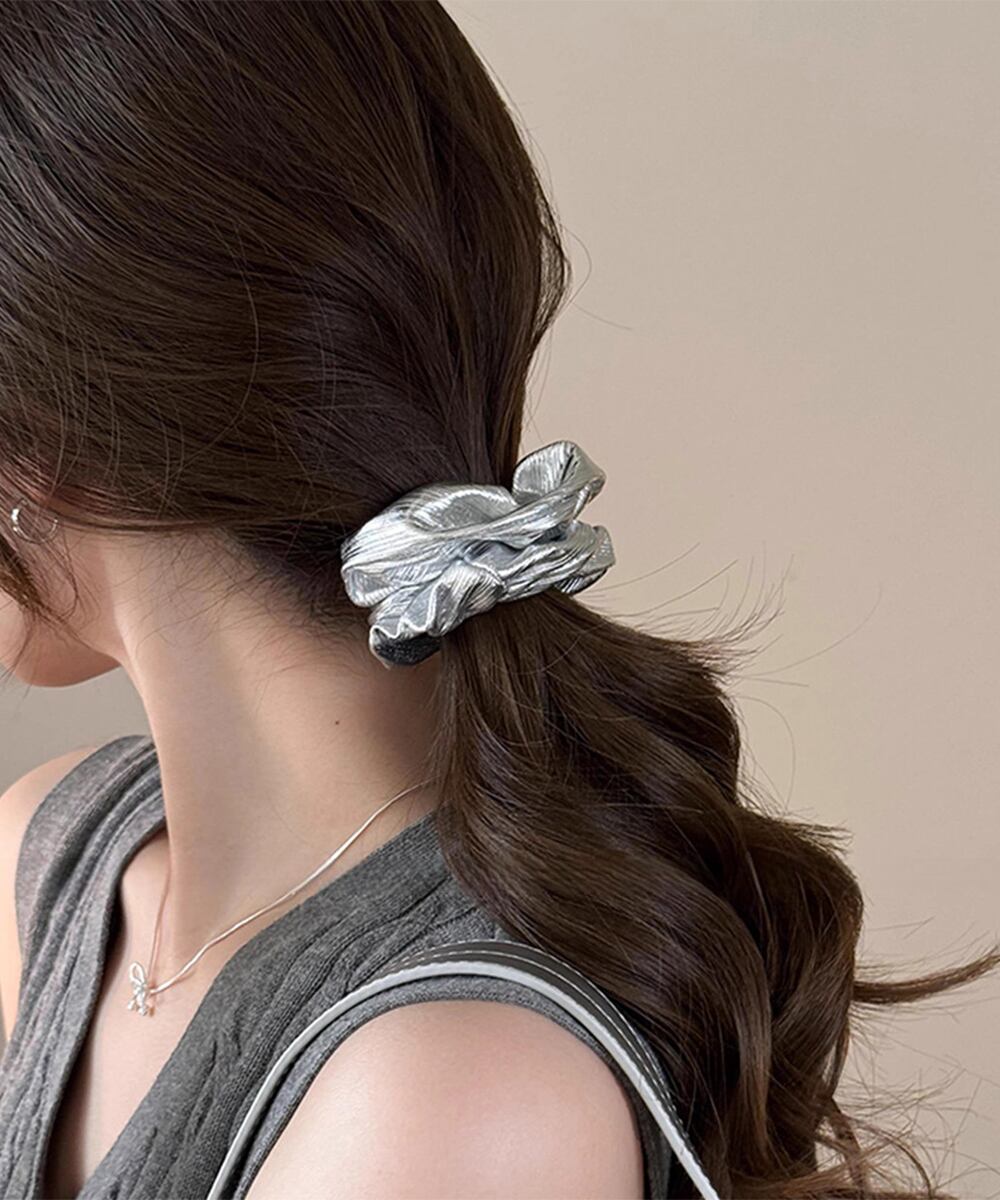 光沢感のある素材を使用した、おしゃれなシュシュ。