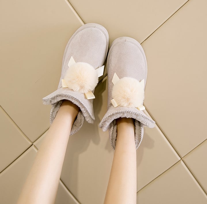 裏起毛で暖かく、ポンポンがかわいいアクセントになる1足。