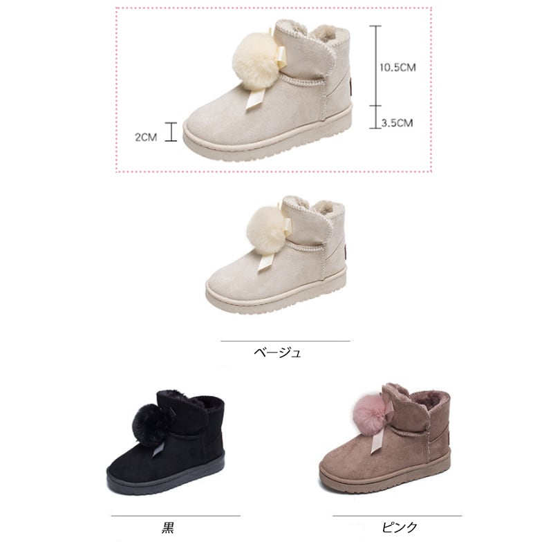 レディース 靴 ポンポン ショート ブーツ ぺたんこ 裏ボア 裏起毛 防寒 暖かい
