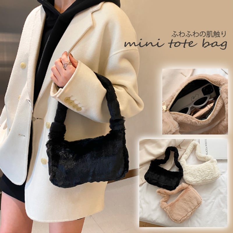 これからの季節にピッタリのフェイクファーのミニトートバッグ