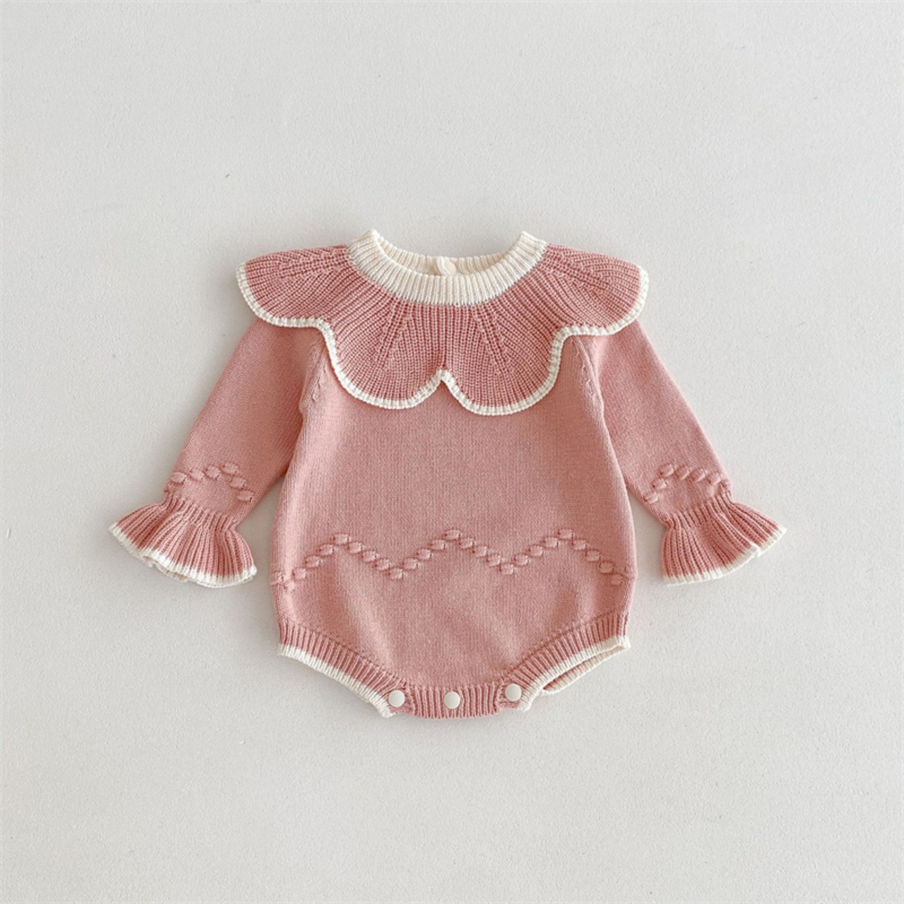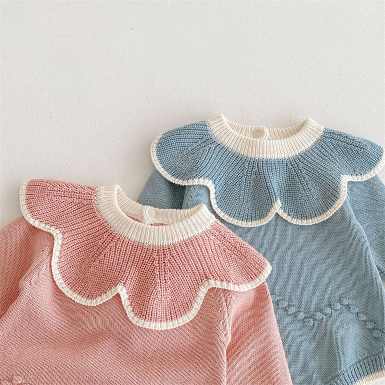 【海外からの取り寄せ】2025秋新作 ベビー服 ラッフルカラー ニット ロンパース 子供服 女の子 かぎ編み セーター 可愛い #[ckd1095247_22500]【送料込み】【251110】