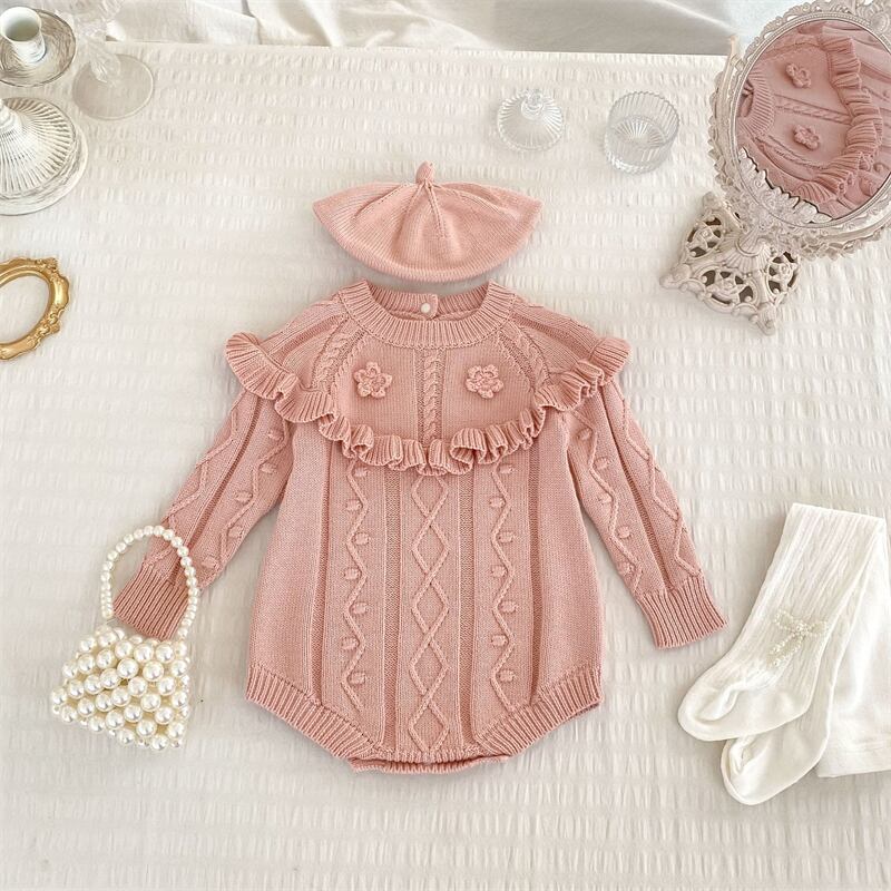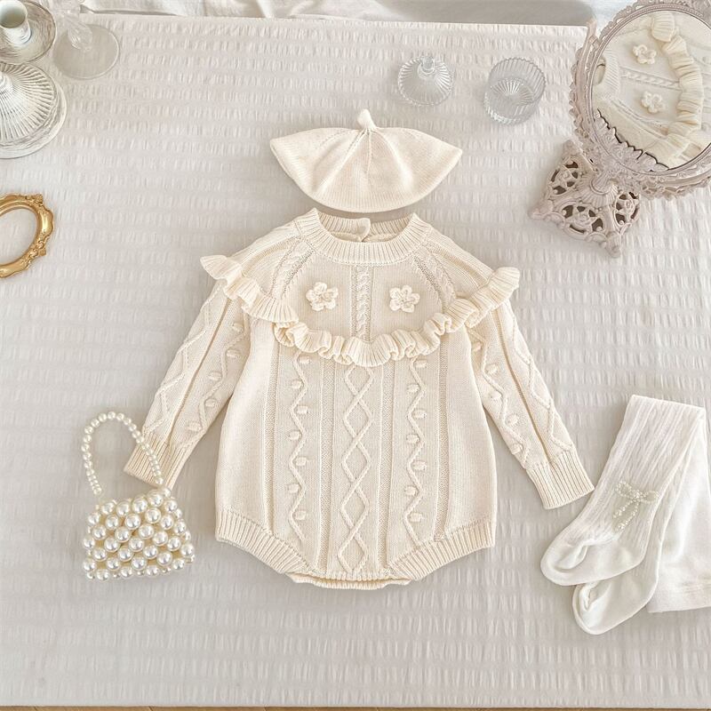 【海外からの取り寄せ】2025秋新作 ベビー服 かぎ編み お花柄 ニット ロンパース 子供服 女の子 セーター 可愛い 2色 #[ckd1095265_24500]【送料込み】【251123】