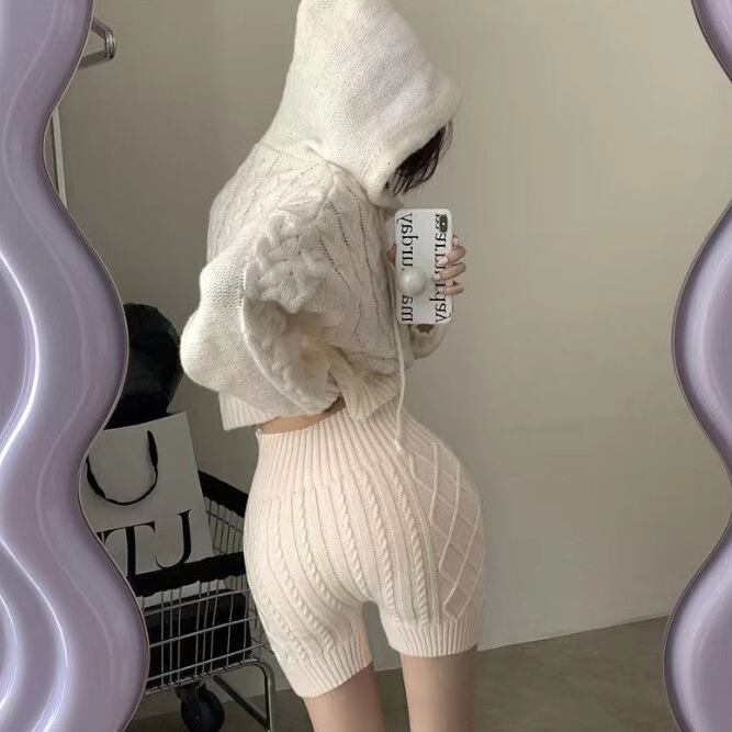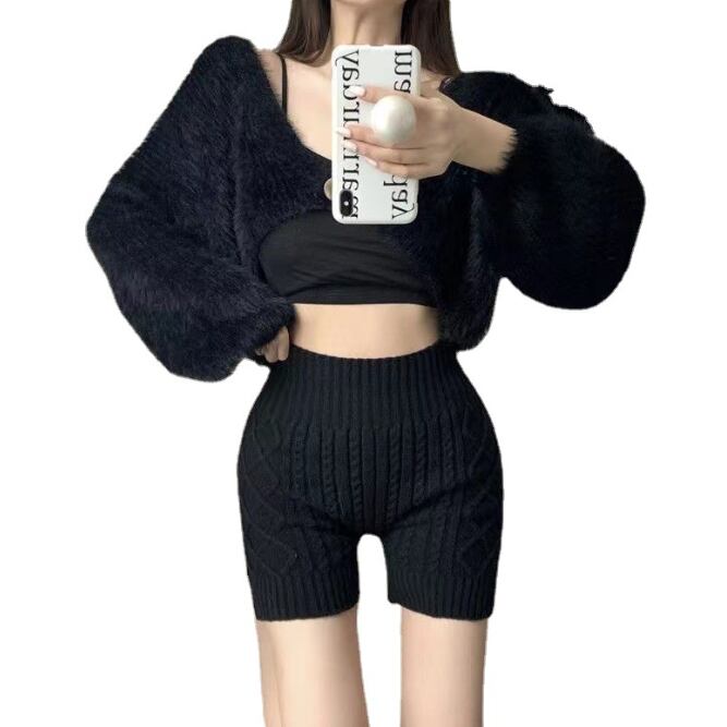 ・ふわふわで暖かい毛糸の腹巻きニットパンツ。