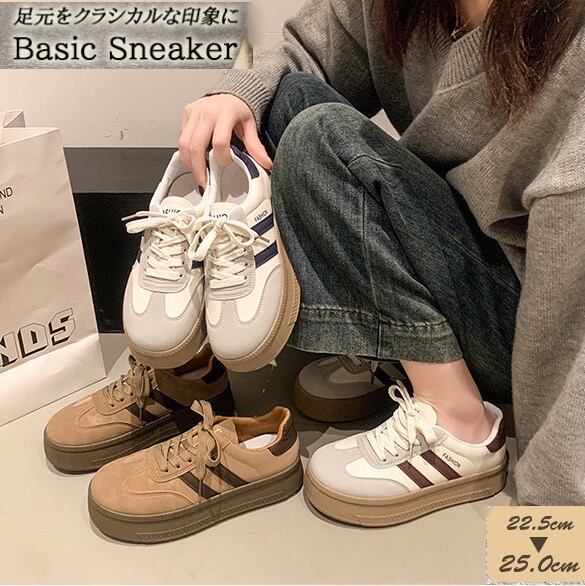 ・ベーシックなデザインの厚底スニーカー。