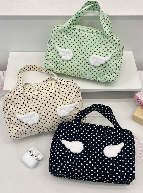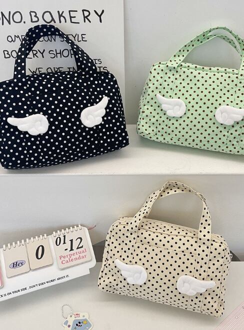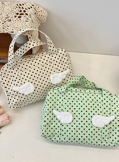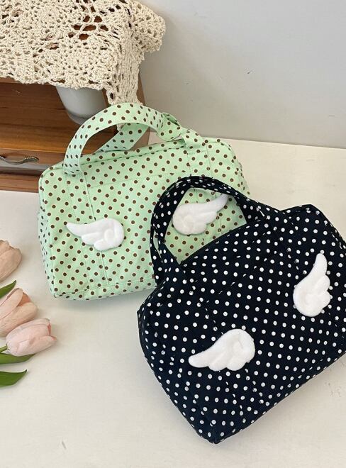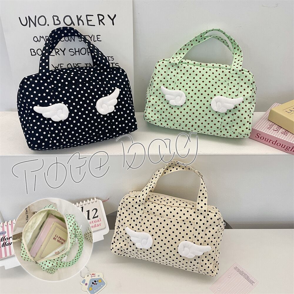 【海外からの取り寄せ】 トートバッグ ドット柄 小物入れ 天使の羽 サブバッグ 大容量 軽い 大人可愛い #[bag1879_9900]【送料込み】【251102】