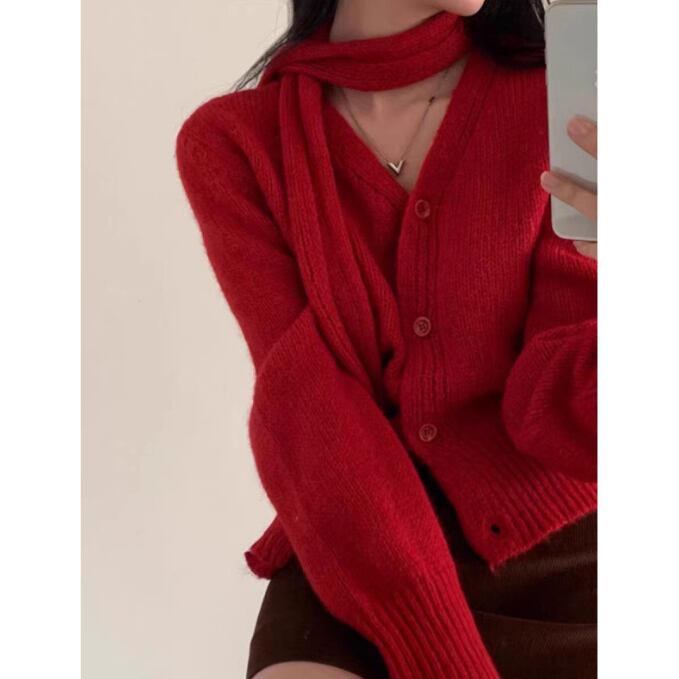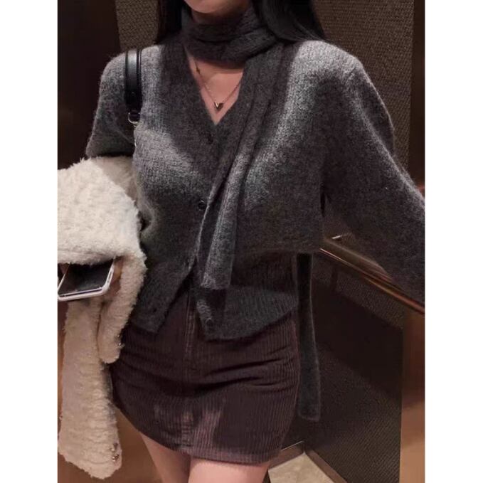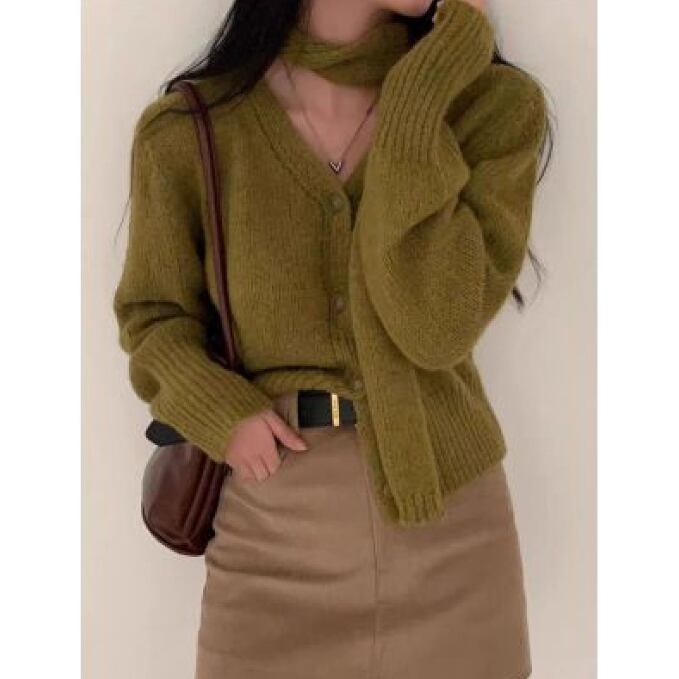 【海外からの取り寄せ】 2025新作 カーディガン トップス 長袖 ニット Vネックの長袖セーター スカーフ 韓国風 #[cardigan229_19800]【送料込み】【251102】