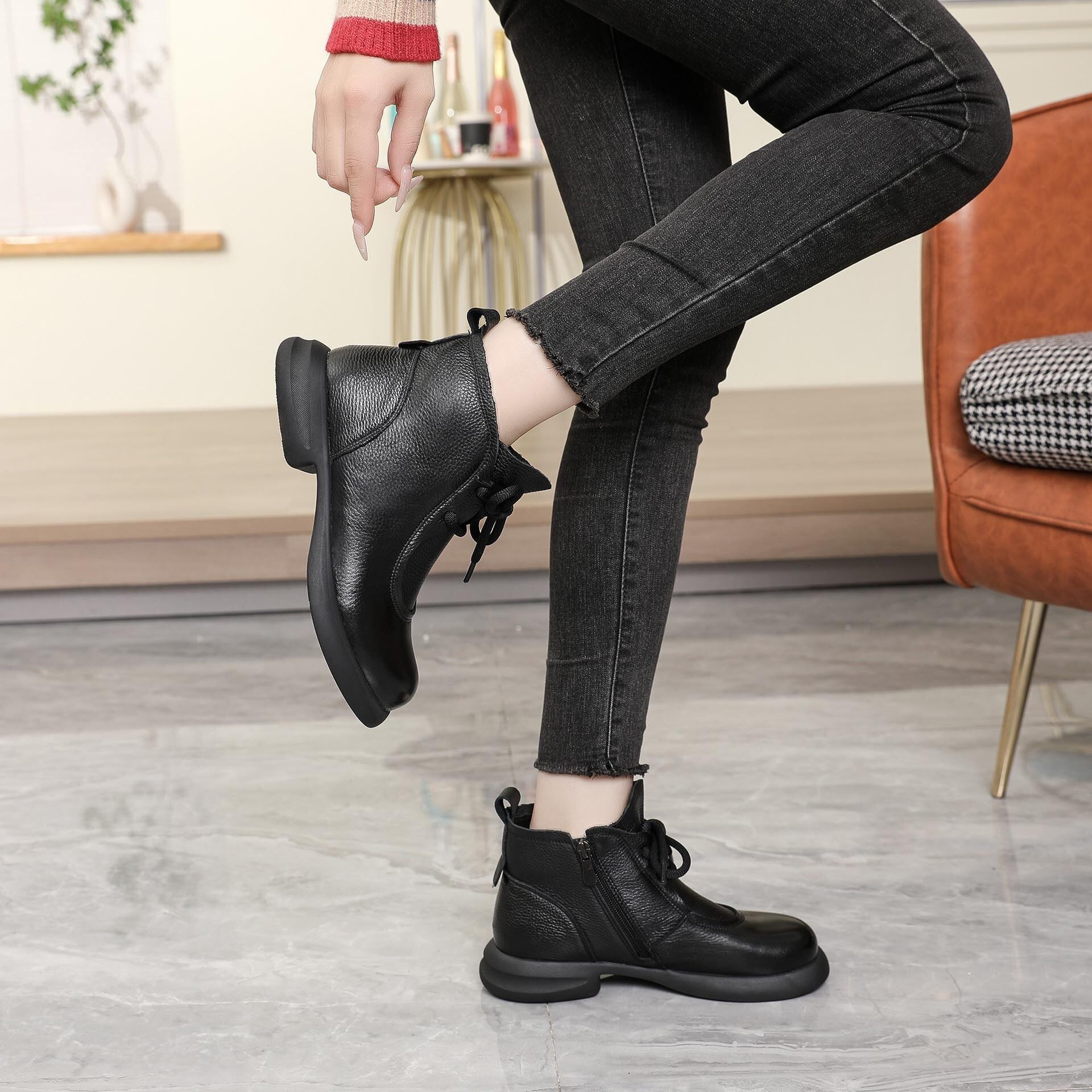 【海外からの取り寄せ】 2025秋冬 ブーツ 靴 ショートブーツ 安定感 裏起毛 防寒 靴 ラウンドトゥ レザー調 #[boots391_21800]【送料込み】【251029】