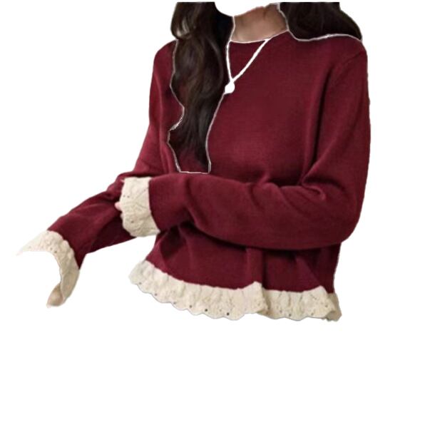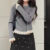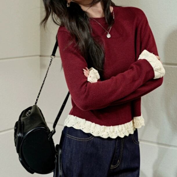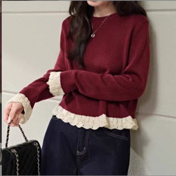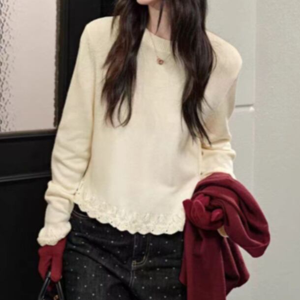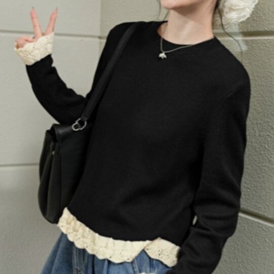 【海外からの取り寄せ】 2025新作 レディース 裾フリルクルーネックニット スリム プルオーバー 体型カバー 異素材 #[tops710_15800]【送料込み】【251029】