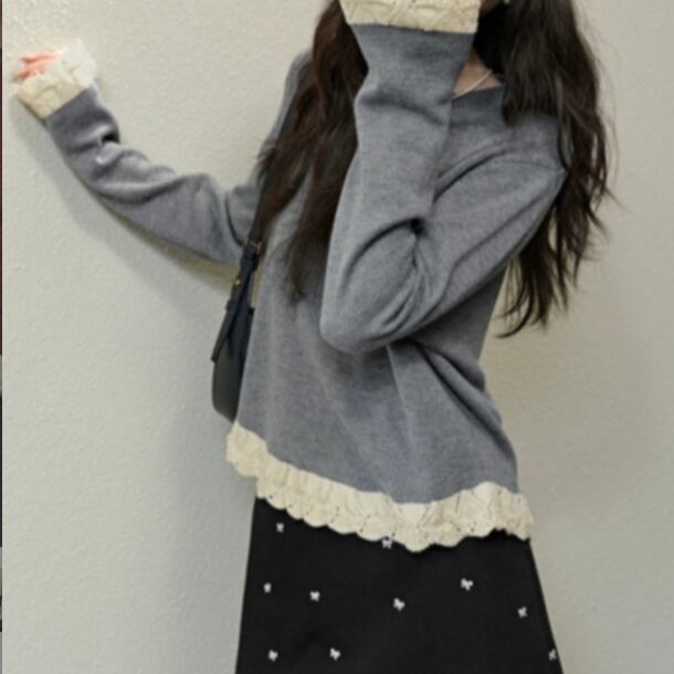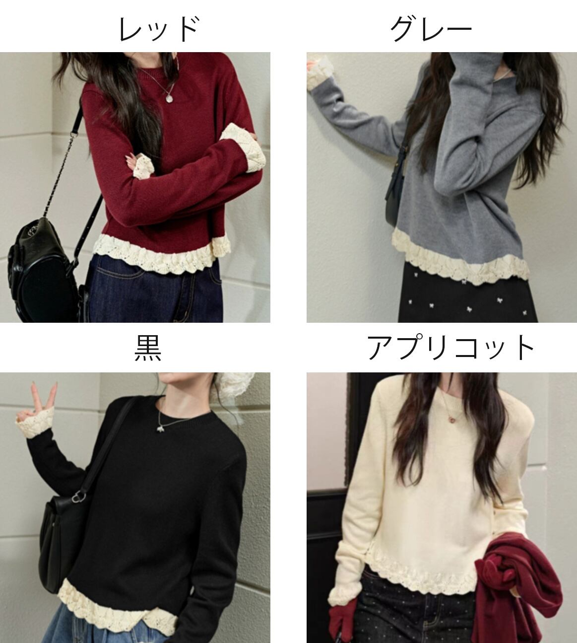 1枚で重ね着コーデが楽しめる レースニットトップス