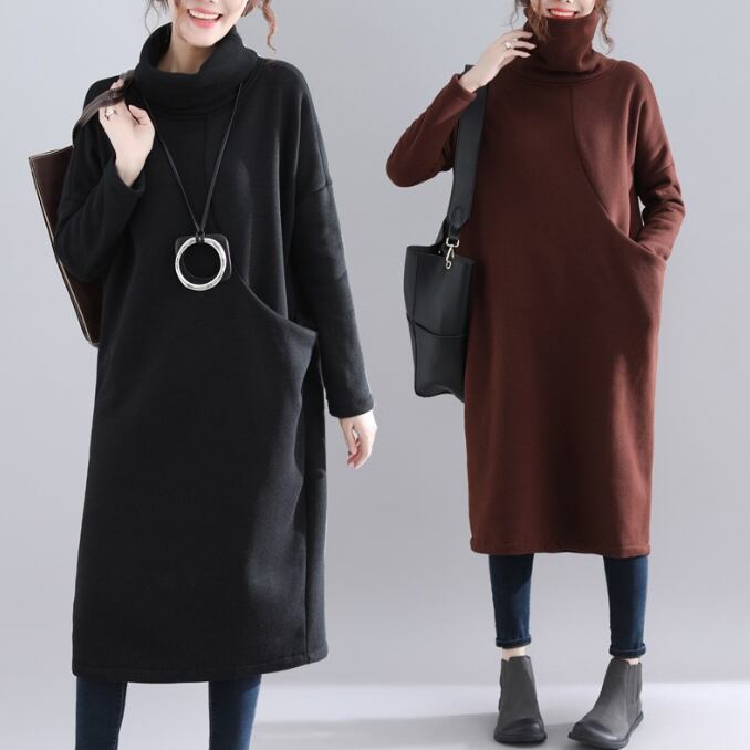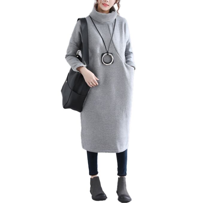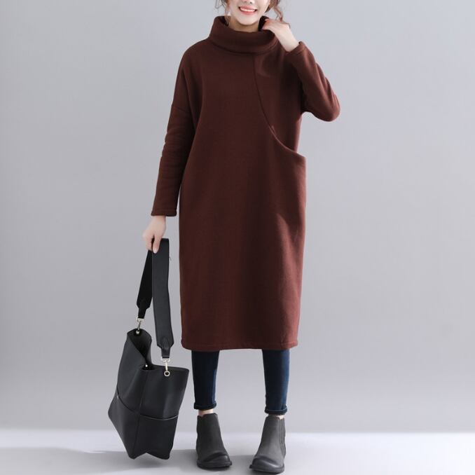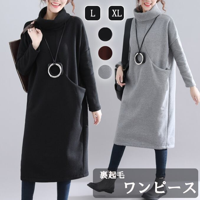【海外からの取り寄せ】 2025新作 裹起毛 ワンピース ポケット付き 立ち襟 コットン チュニック レイヤード #[onepiece444_31800]【送料込み】【251029】