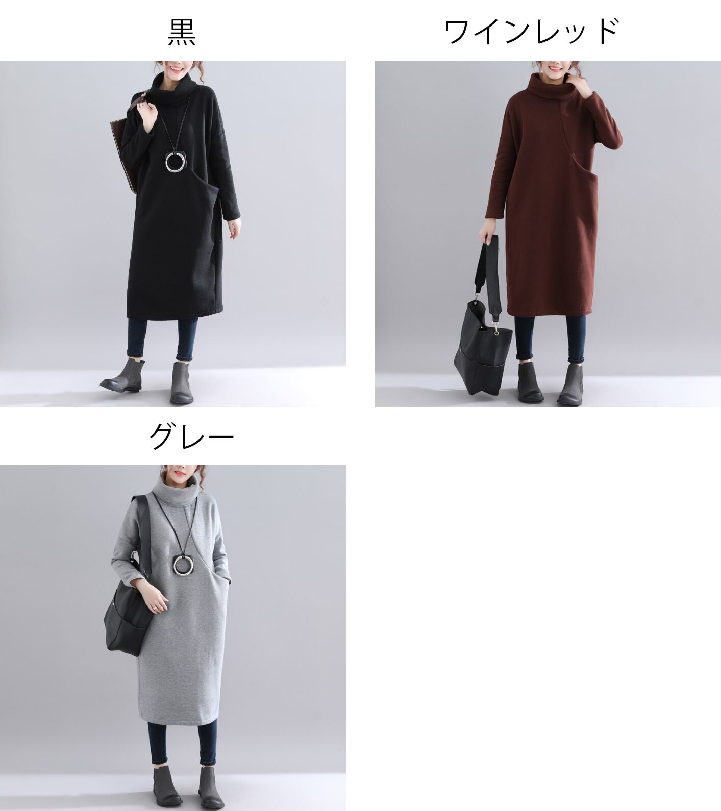 ゆるっと着こなせる ハイネックチュニックワンピース。