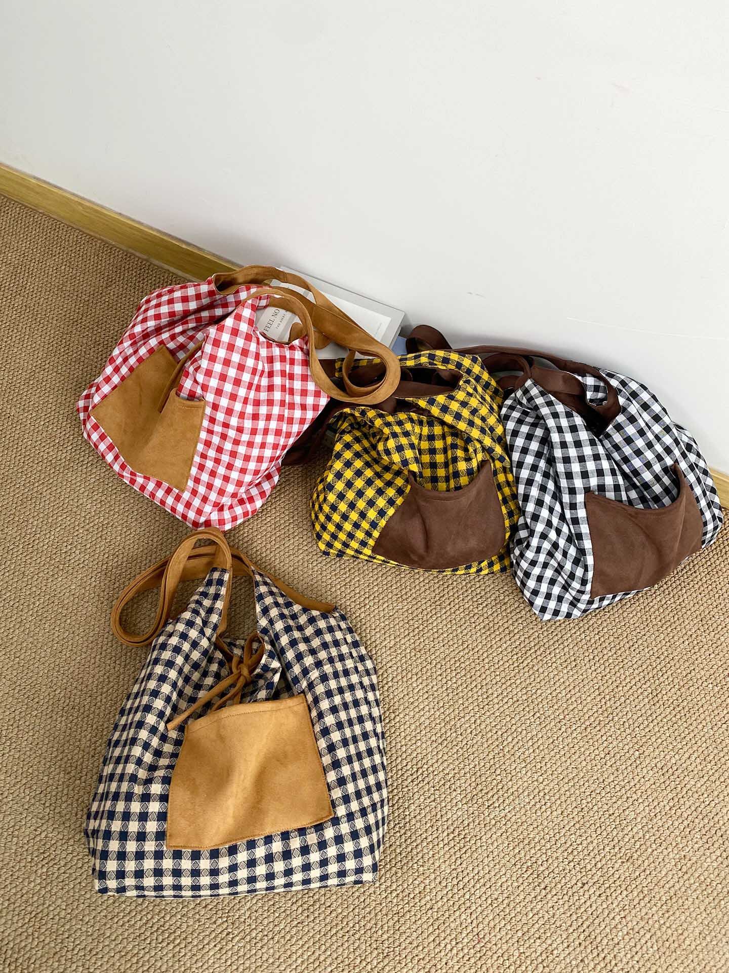 ・シンプルながら目を引くチェック柄リバーシブルバッグ。