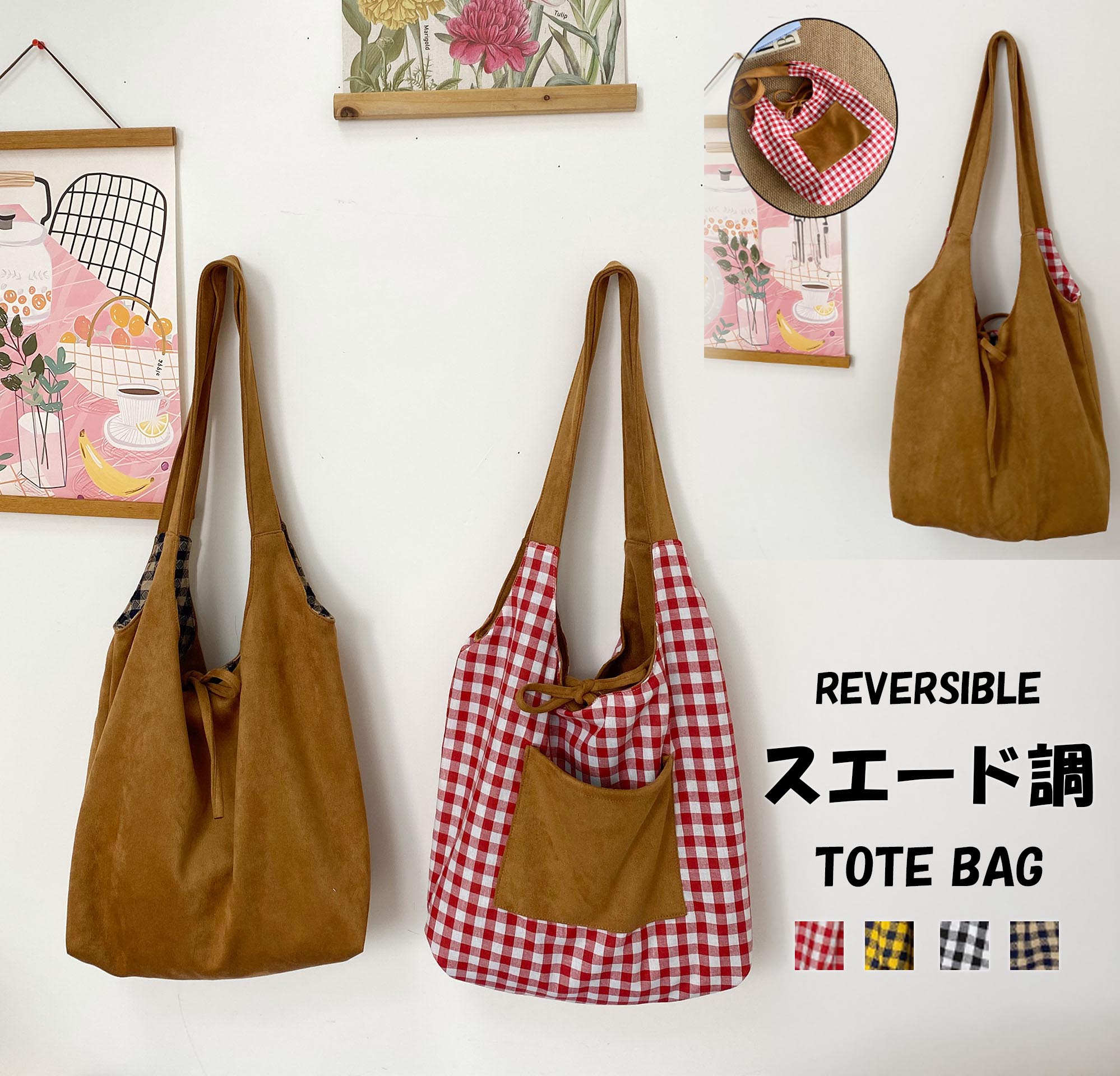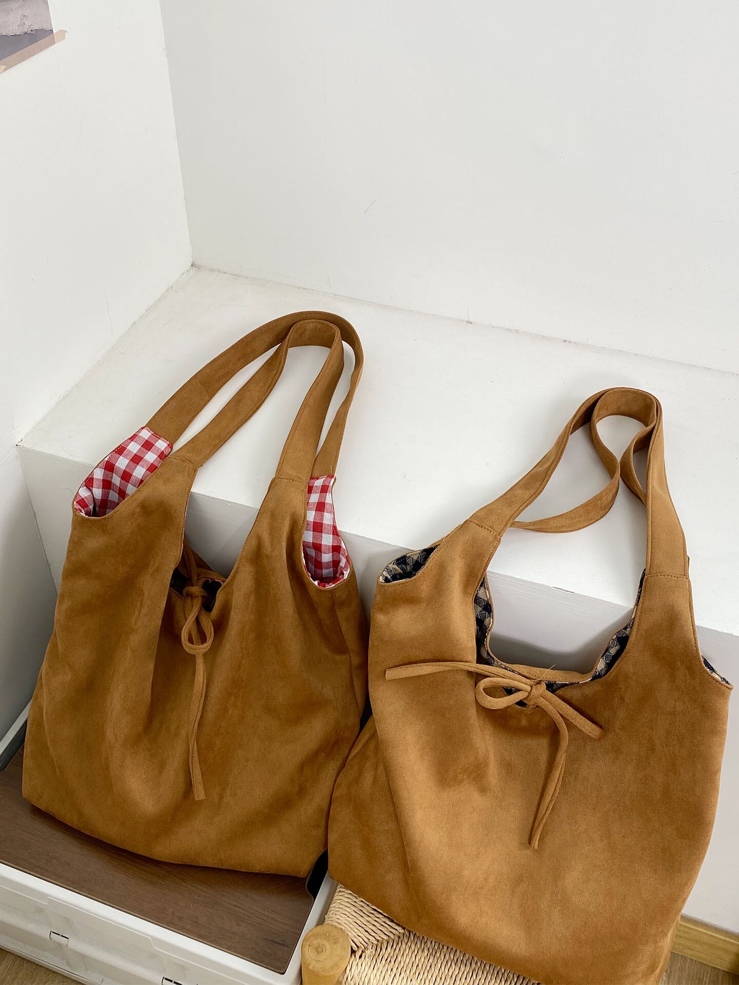 【海外からの取り寄せ】2025新作 レディース スエード調 トートバッグ 軽量 リバーシブル 肩掛け 大容量 カジュアル 外ポケット #[bag1874_12900]【送料込み】【251029】