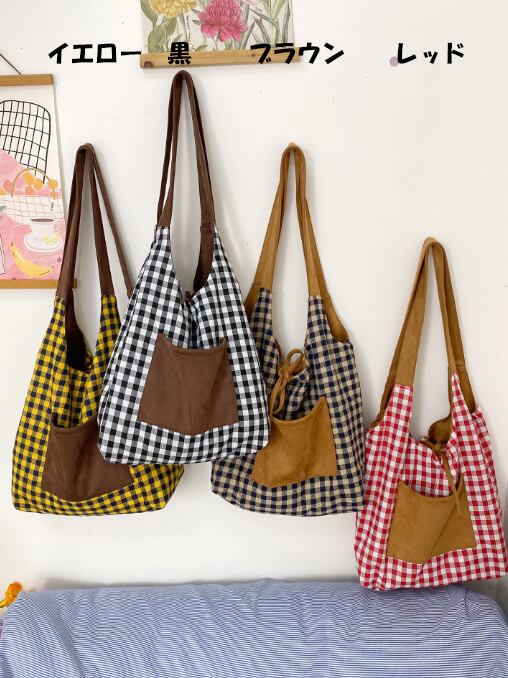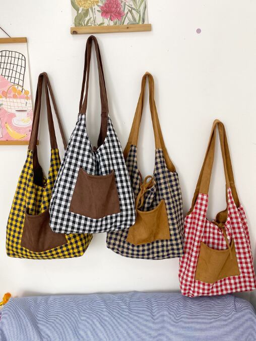 シンプルながら目を引くチェック柄 リバーシブルバッグ
