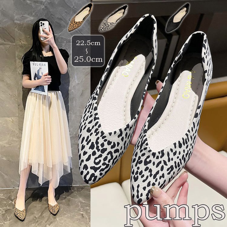 【海外からの取り寄せ】 パンプス ヒョウ柄 ぺたんこ レオパード柄 ソフト フラット 楽ちん ポインテッドトゥ 軽い #[pumps366_13800]【送料込み】【251022】