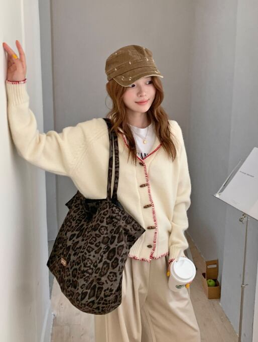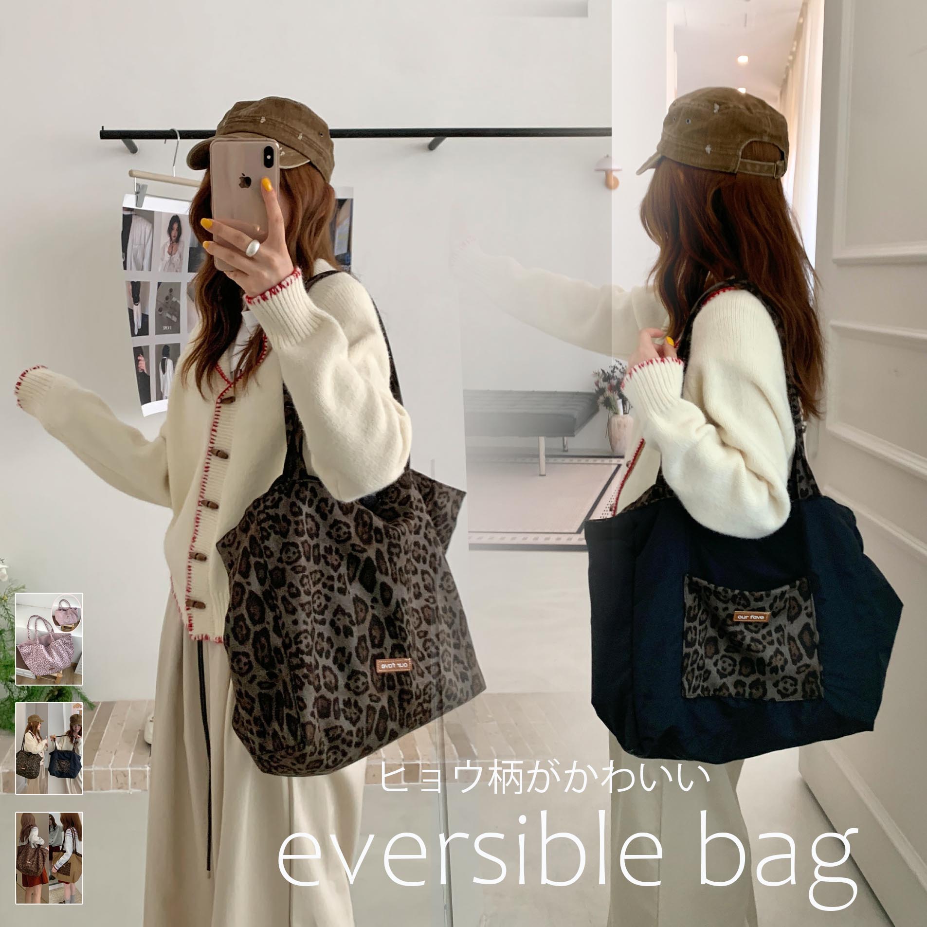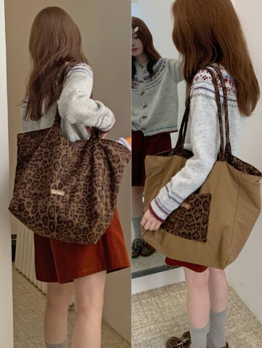 【海外からの取り寄せ】2025新作 レディース ショルダー サブバッグ エコ 軽量 キャンバス 肩掛け リバーシブル ヒョウ柄 #[bag1873_14900]【送料込み】【251022】