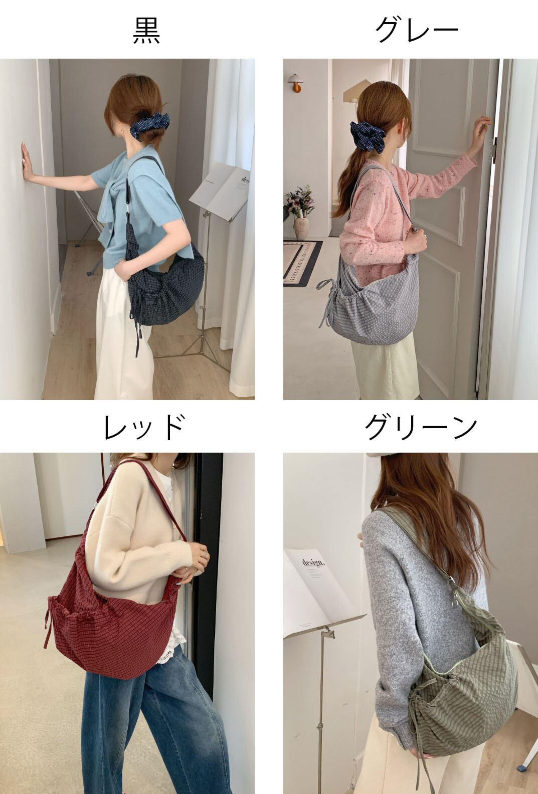 くしゅっとしたドローストリングデザイン ショルダーバッグ