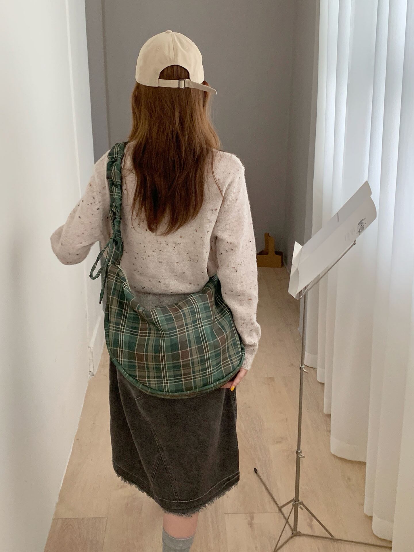 シンプルながら目を引くチェック柄 バッグ