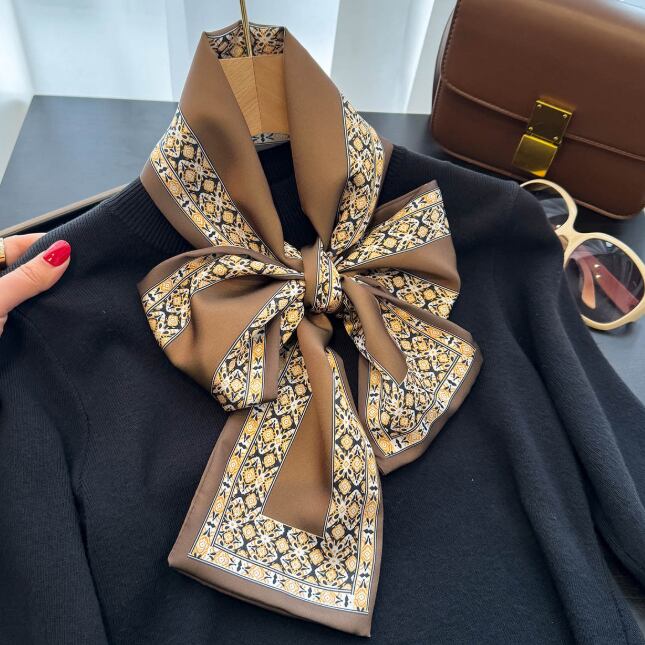 【海外からの取り寄せ】レディース ストール スカーフ ネクタイ ネックスカーフ ロング プリント 12×145cm サテン シルクタッチ #[scarf190_3800]【送料込み】【251022】