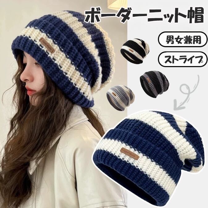 【海外からの取り寄せ】2025秋冬新作 レディース 帽子 ニットキャップ 小顔効果 伸縮 かわいい 防寒 保温 ニット帽 ボーダー #[hat451_4800]【送料込み】【251022】