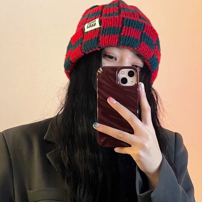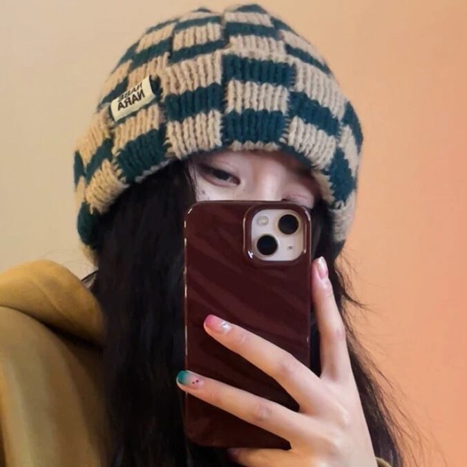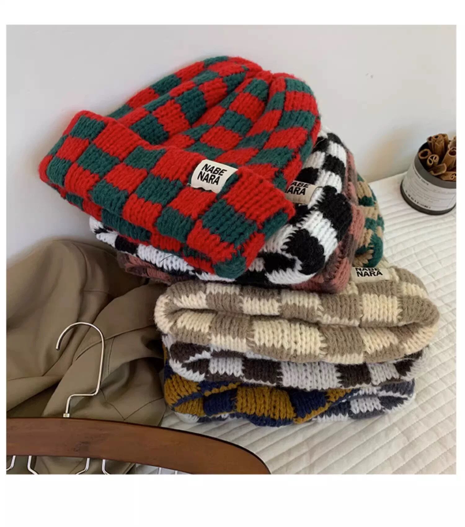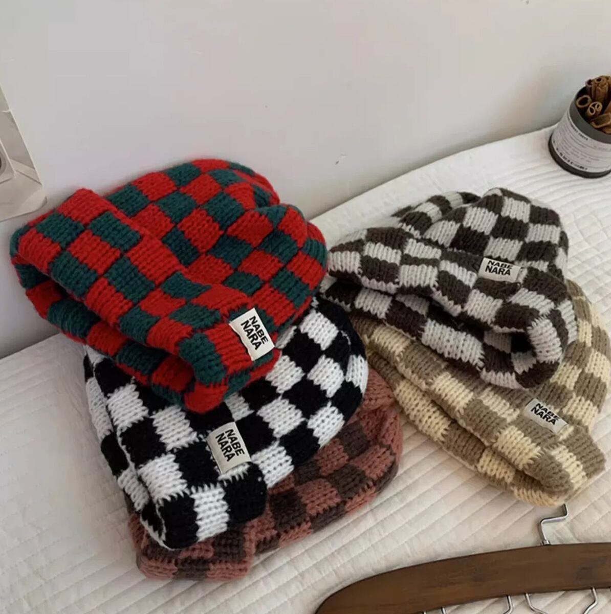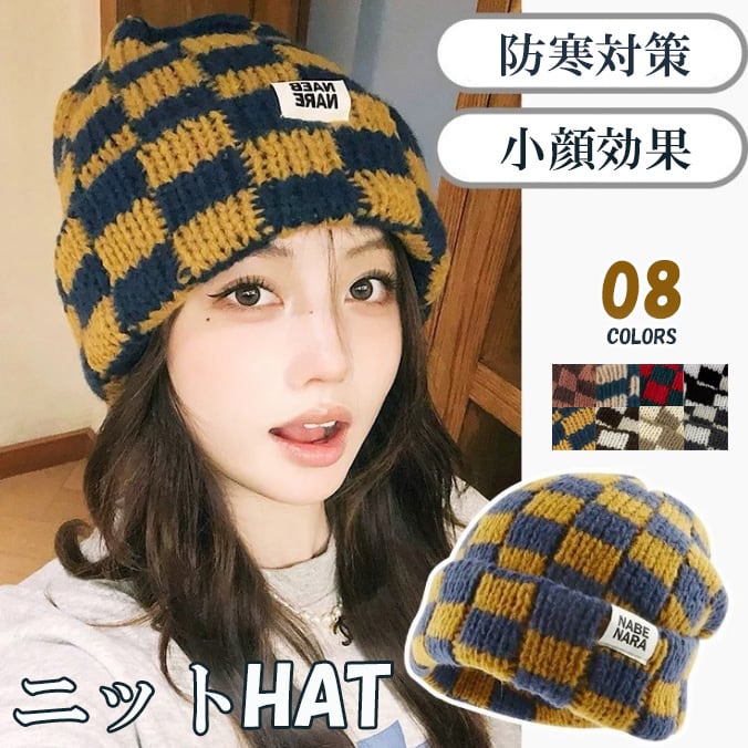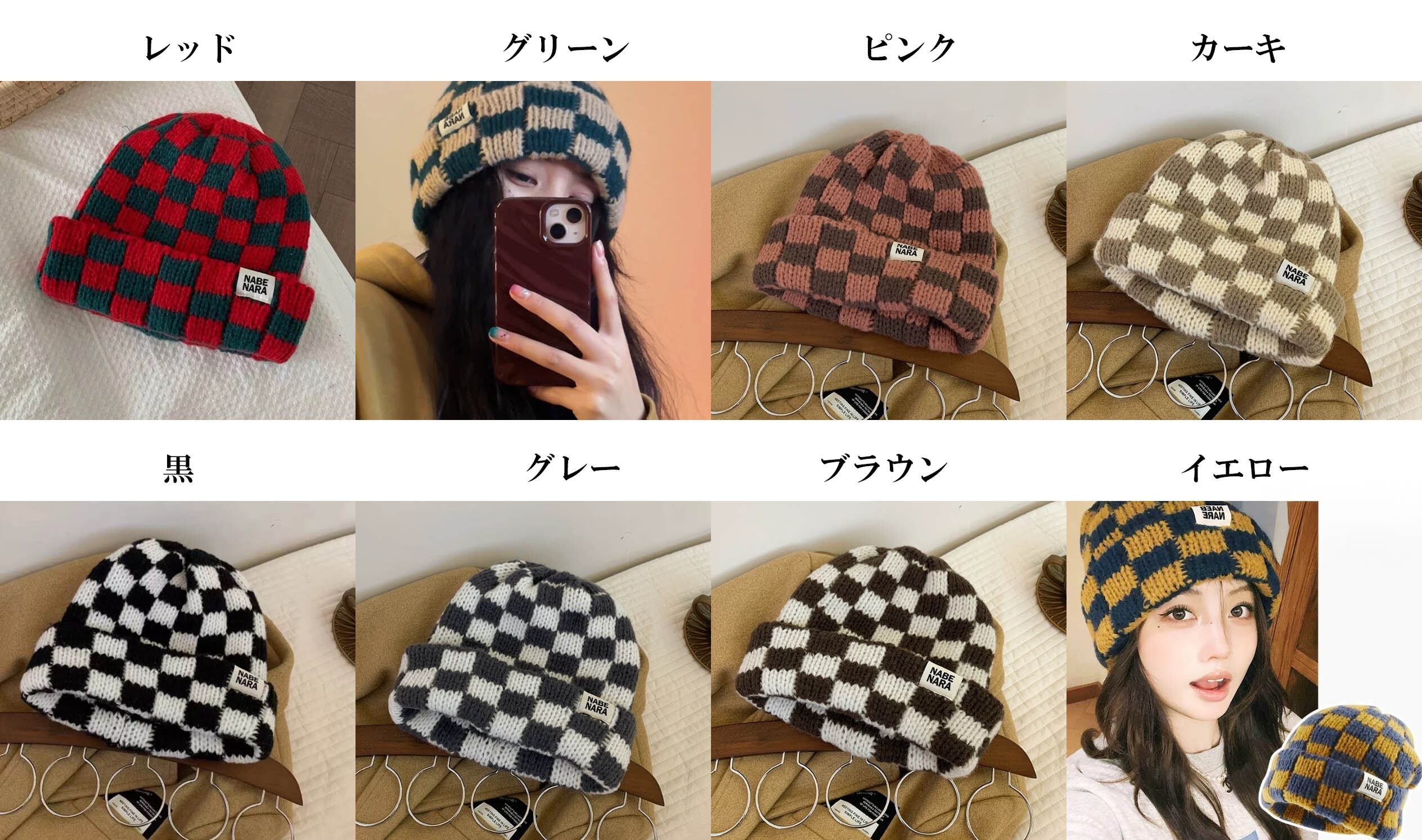 【海外からの取り寄せ】2025秋冬新作 レディース 帽子 ニットキャップ 小顔効果 伸縮 かわいい 防寒 保温 チェック 男女兼用 #[hat449_6800]【送料込み】【251022】