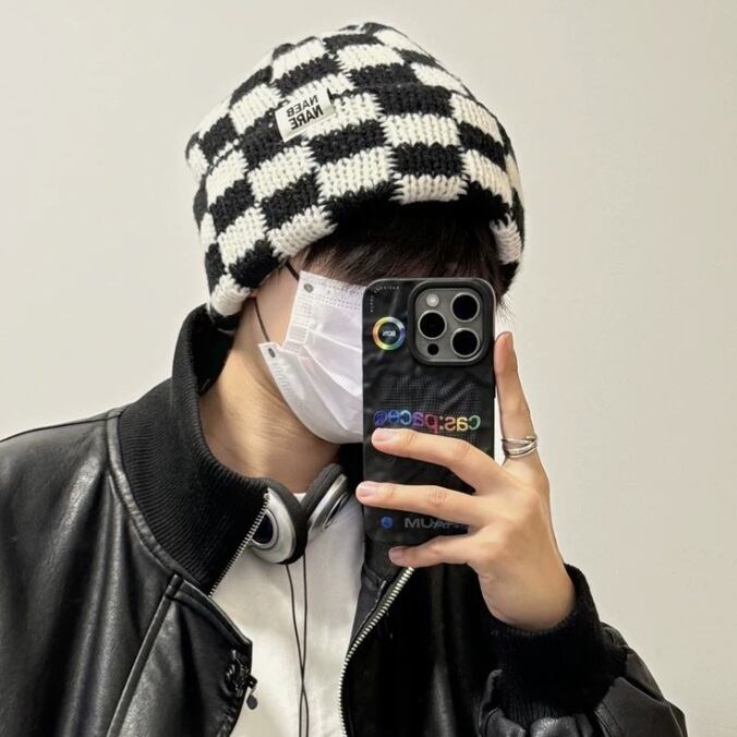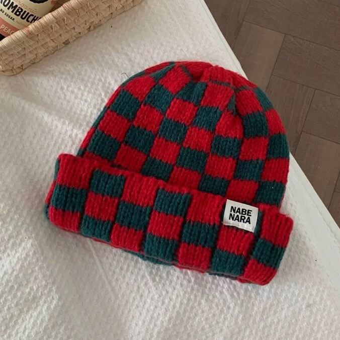 カジュアルコーディネートにぴったりのチェック柄 ニット帽