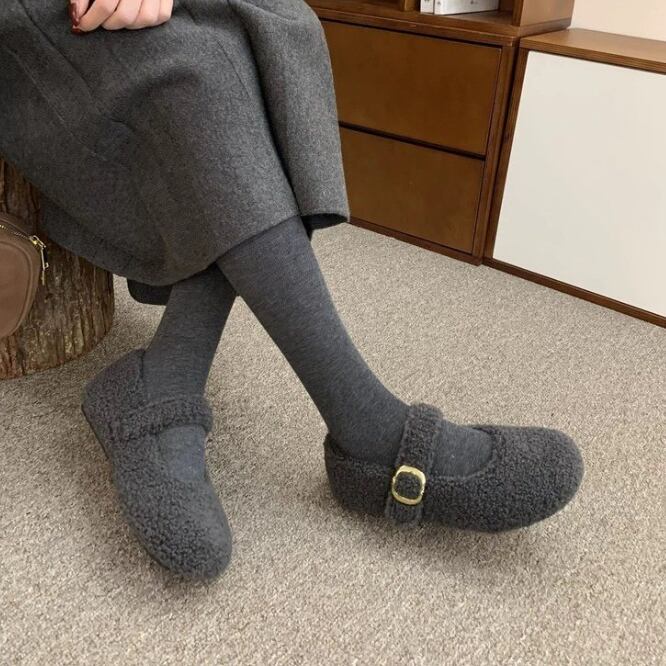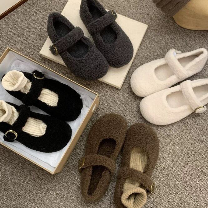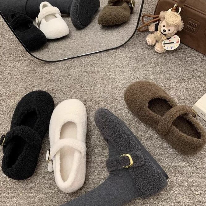 【海外からの取り寄せ】2025新作 レディース ファーパンプス もこもこ ふわふわ ラウンドトゥ ローファー 靴 フラット 歩きやすい #[pumps365_23800]【送料込み】【251022】