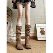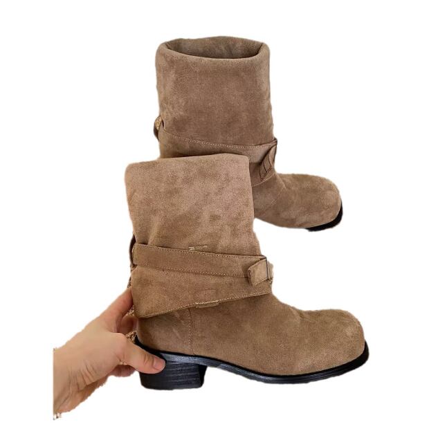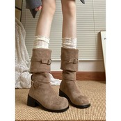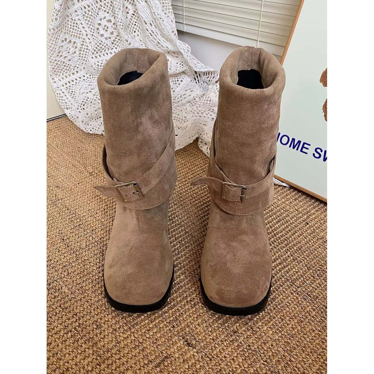 【海外からの取り寄せ】 新作 レディース スエード調 ロングブーツ 2WAY 歩きやすい 防寒 ラウンドトゥ ベルト #[boots389_38800]【送料込み】【251022】