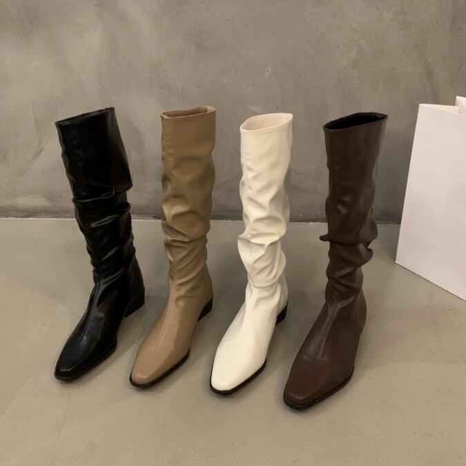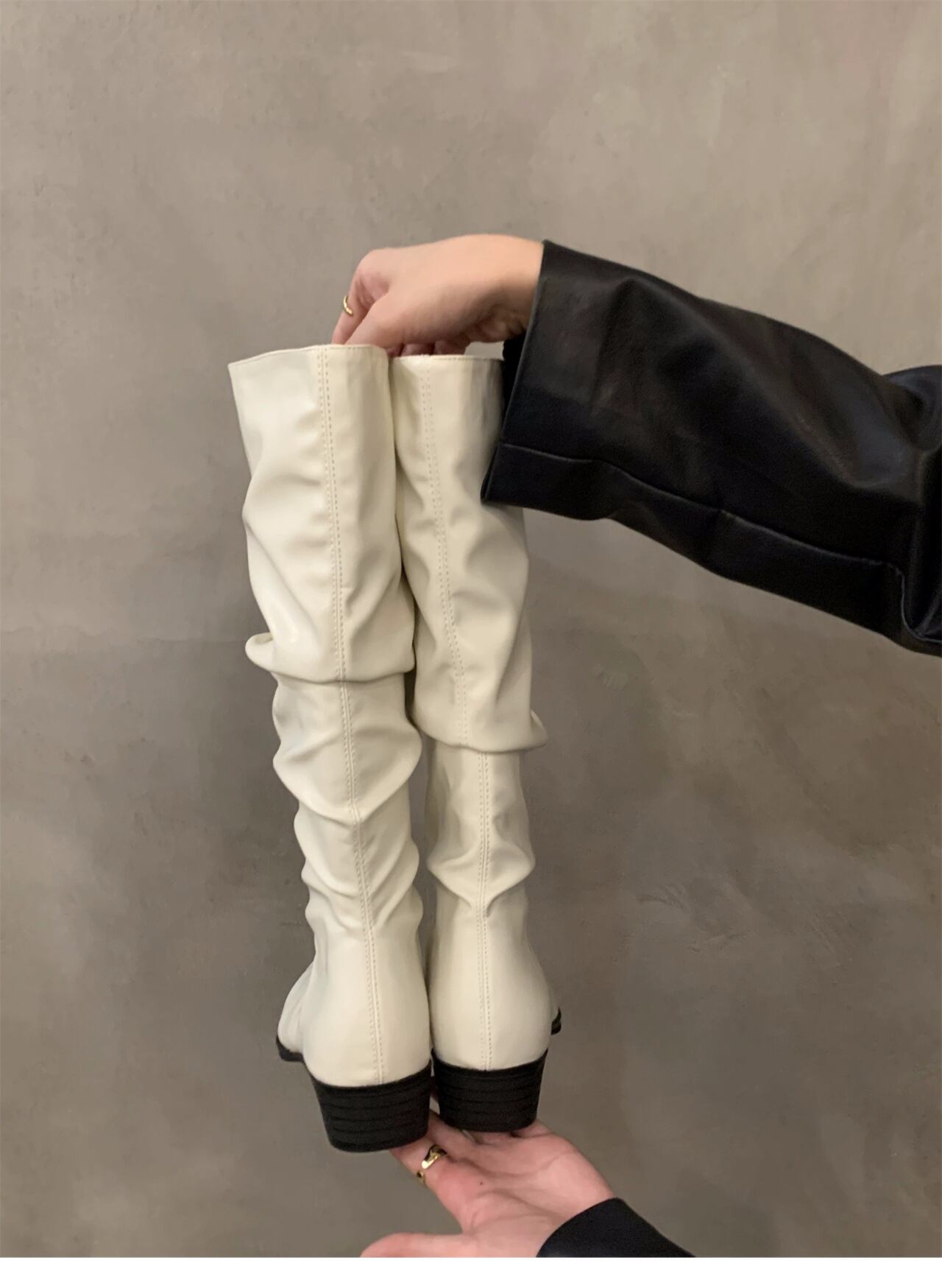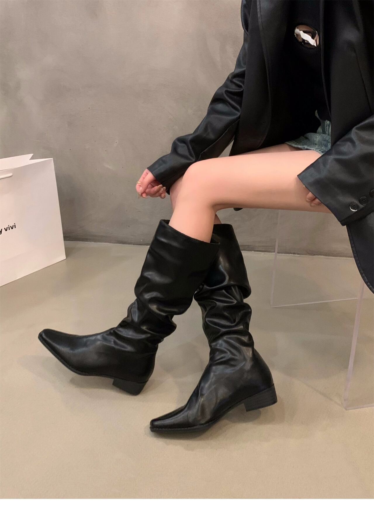 【海外からの取り寄せ】 2025年新作トレンド 人気 レザー調 ワイドシャフトブーツ ポインテッドトゥ ロング 脚長 #[boots388_32800]【送料込み】【251022】