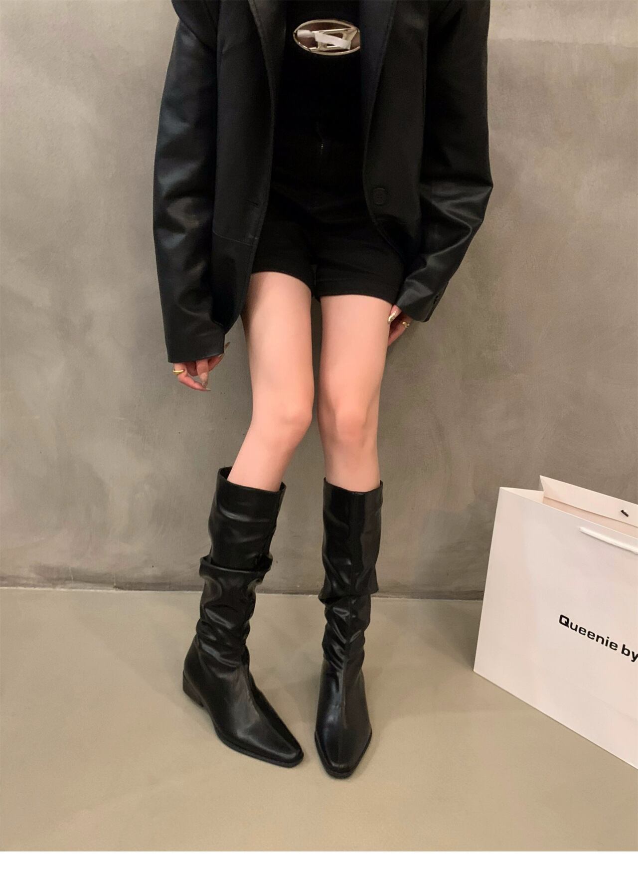 ・ストレートワイドなシルエットが今季らしいワイドシャフトロングブーツです。
