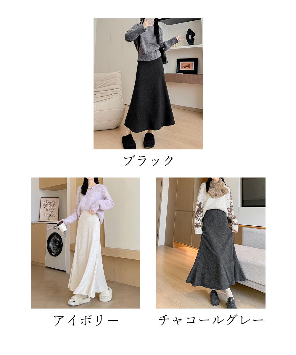 ボトムス ロングスカート 無地スカート ウエストゴム ハイウエスト 着やせ おしゃれ きれいめ オフィス