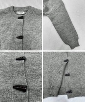 秋冬に映えるヴィンテージライクな牛角型トグルボタン付きニットカーディガン。