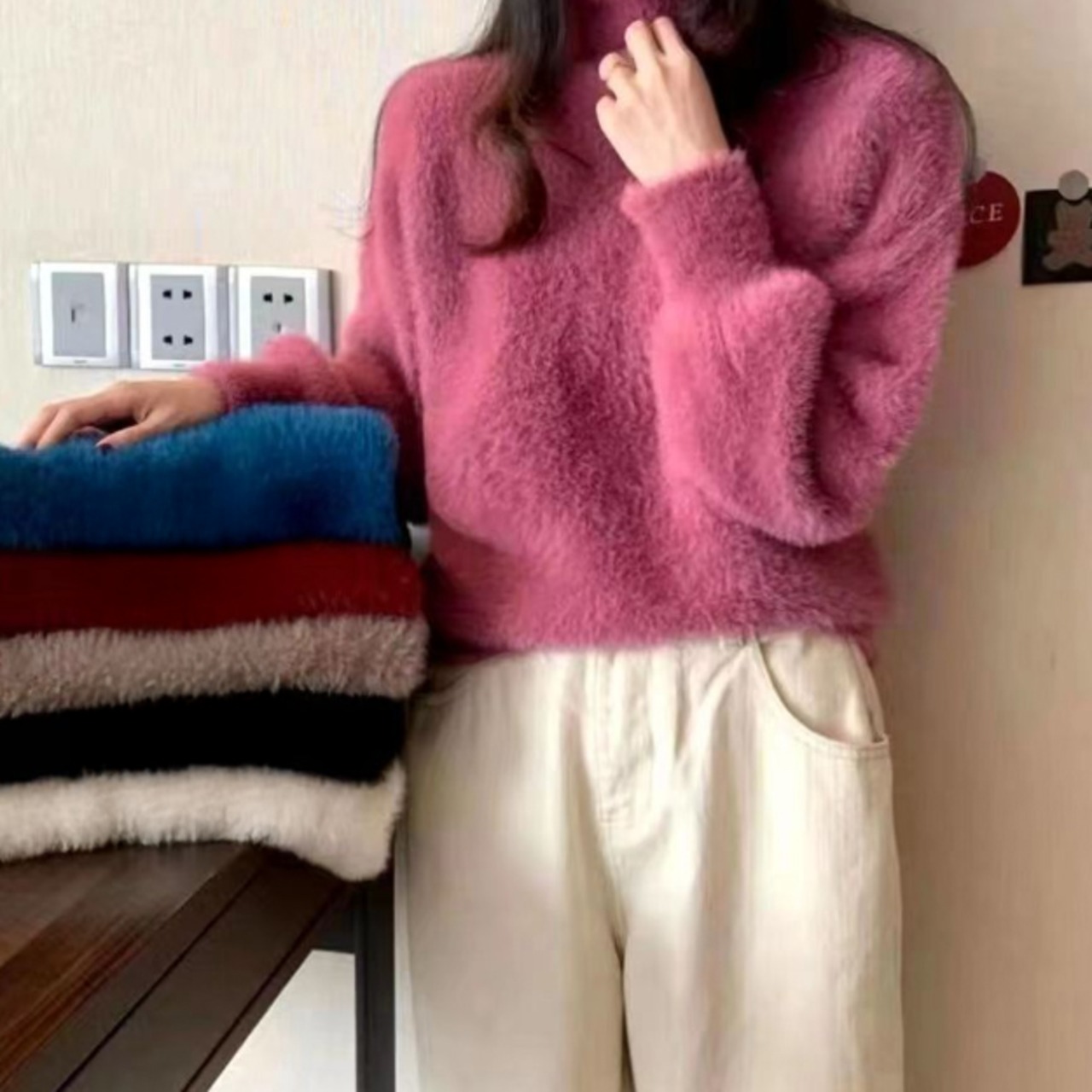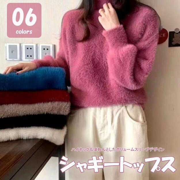 ・ふわっと柔らかなハイネックシャギーニット。