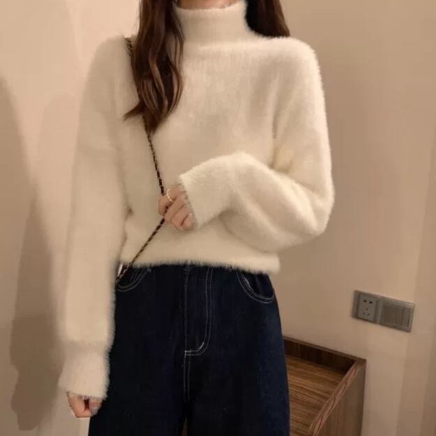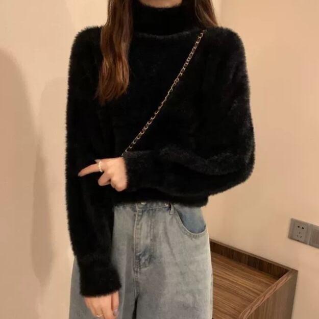 ふわっと柔らかなハイネックシャギーニット