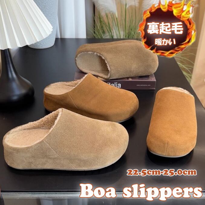 ・ボアが見た目にも温もりを与えてくれるスリッパ。