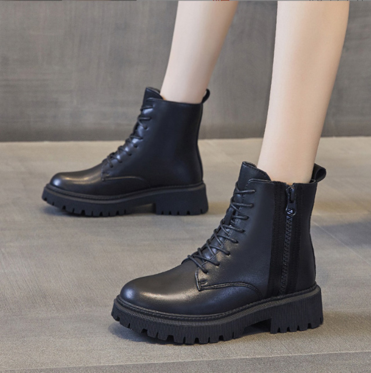 【海外からの取り寄せ】【即納】新作 レディース 靴 ショートブーツ ミディミドル レースアップ 編み上げ 秋冬 厚底 美脚 脚長 黒 #[boots255zk_12800]【送料込み】【251128】