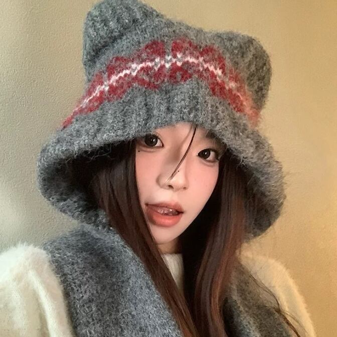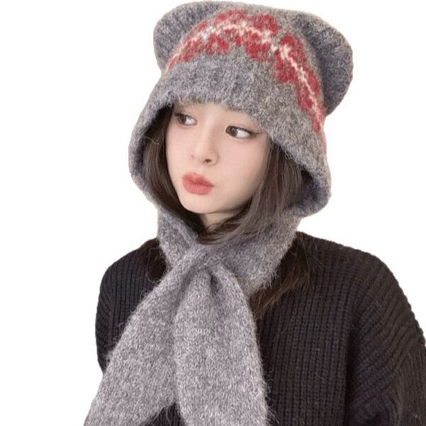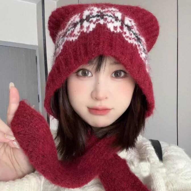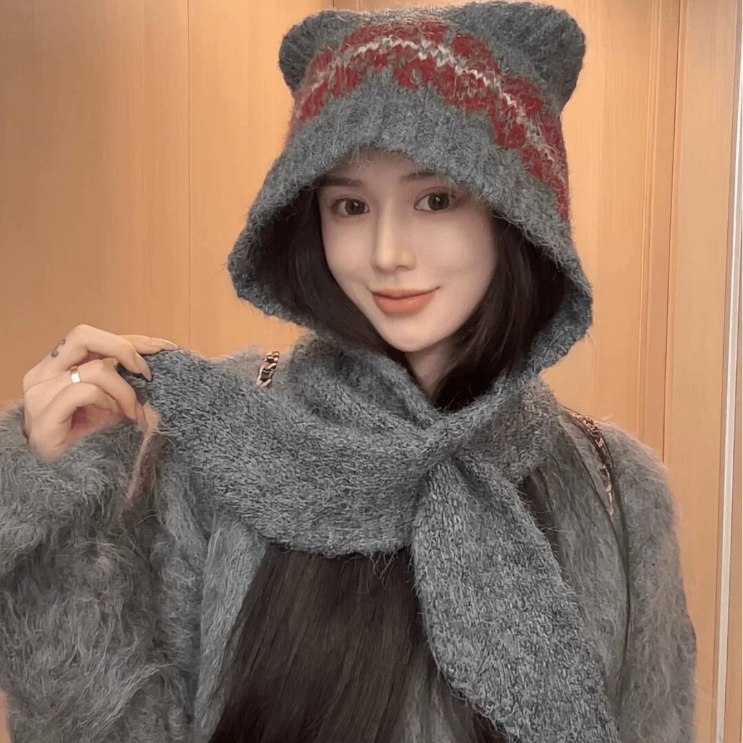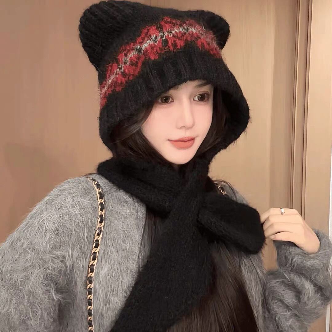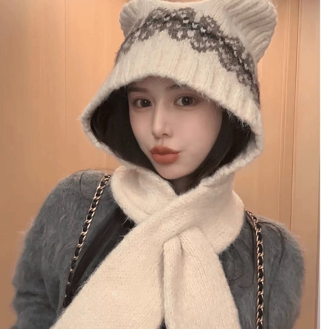 【海外からの取り寄せ】2025秋冬新作 レディース マフラーニット帽 熊耳 ふわもこ ニット帽 もこもこ ざっくり 小顔見せ #[hat455_6800]【送料込み】【251102】