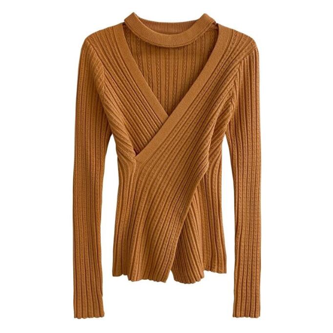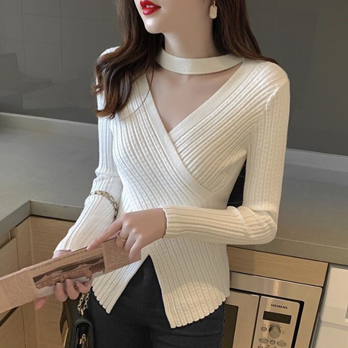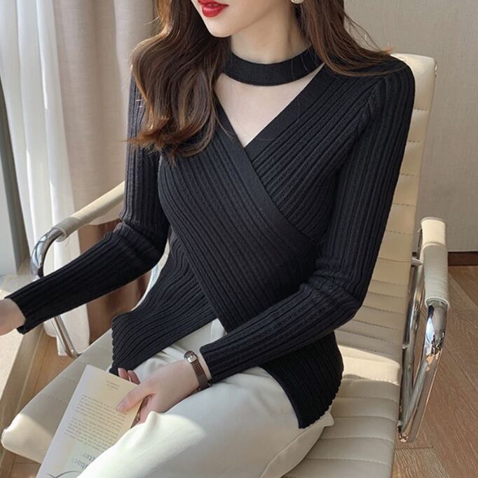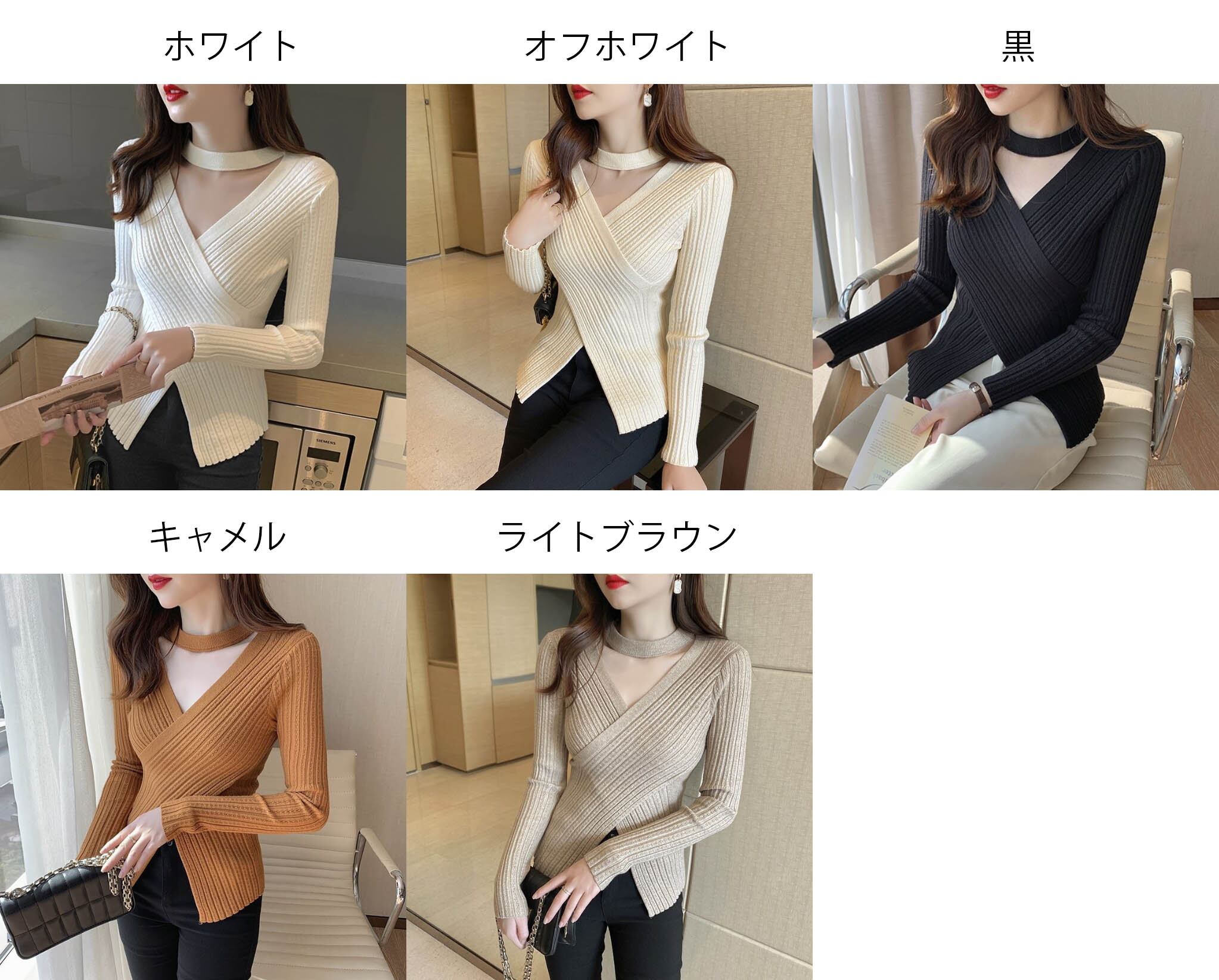 【海外からの取り寄せ】 2025新作 レディース ニットトップス セーター クロスニット vネック 無地 細身 #[tops714_12800]【送料込み】【251102】