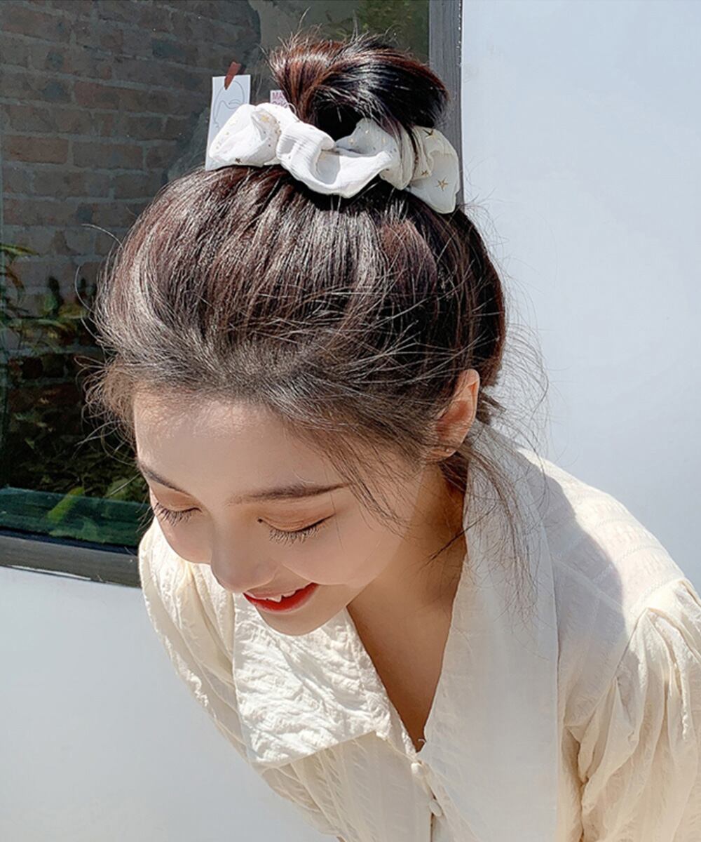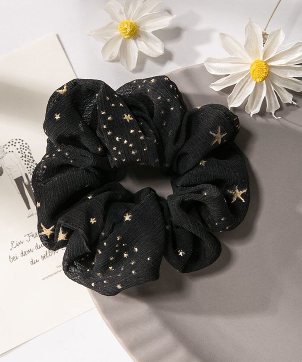 夜空のようなきらめきを散りばめた星柄シュシュ。