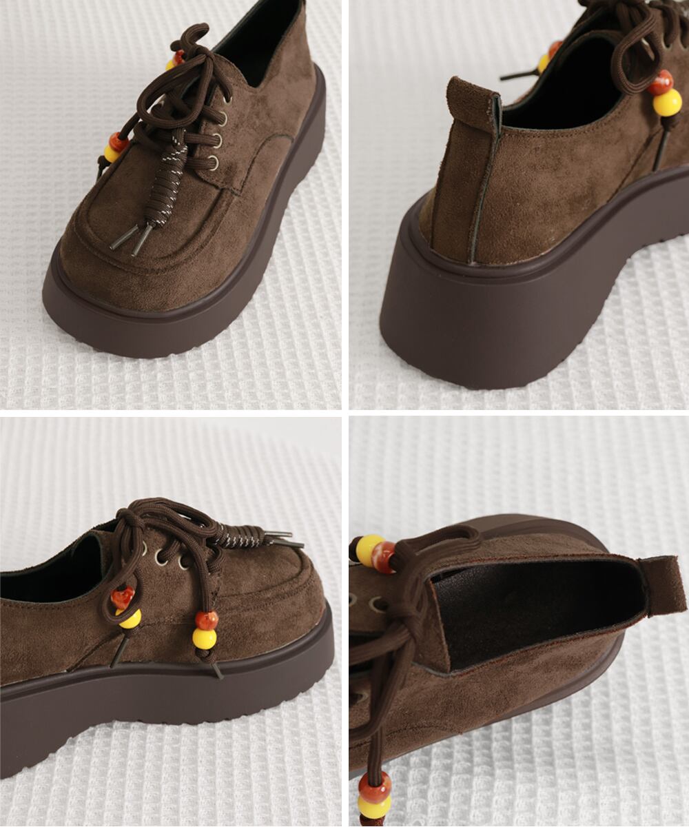 編み上げローファー 疲れにくい 厚底靴 太ヒールシューズ