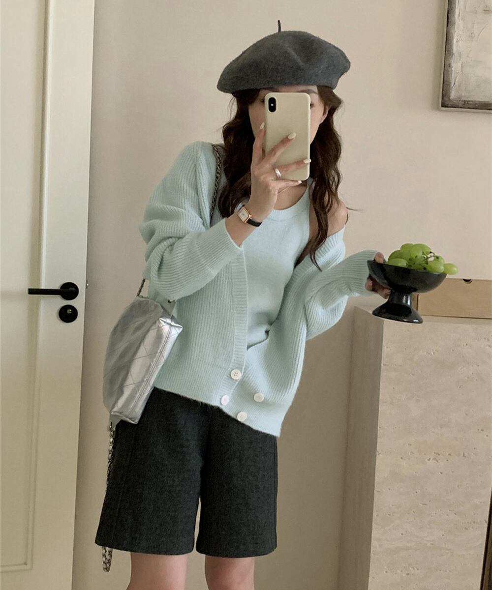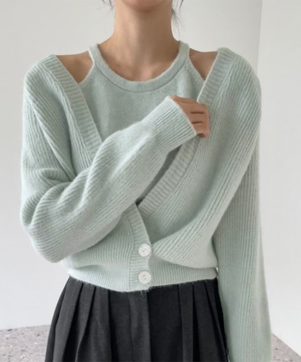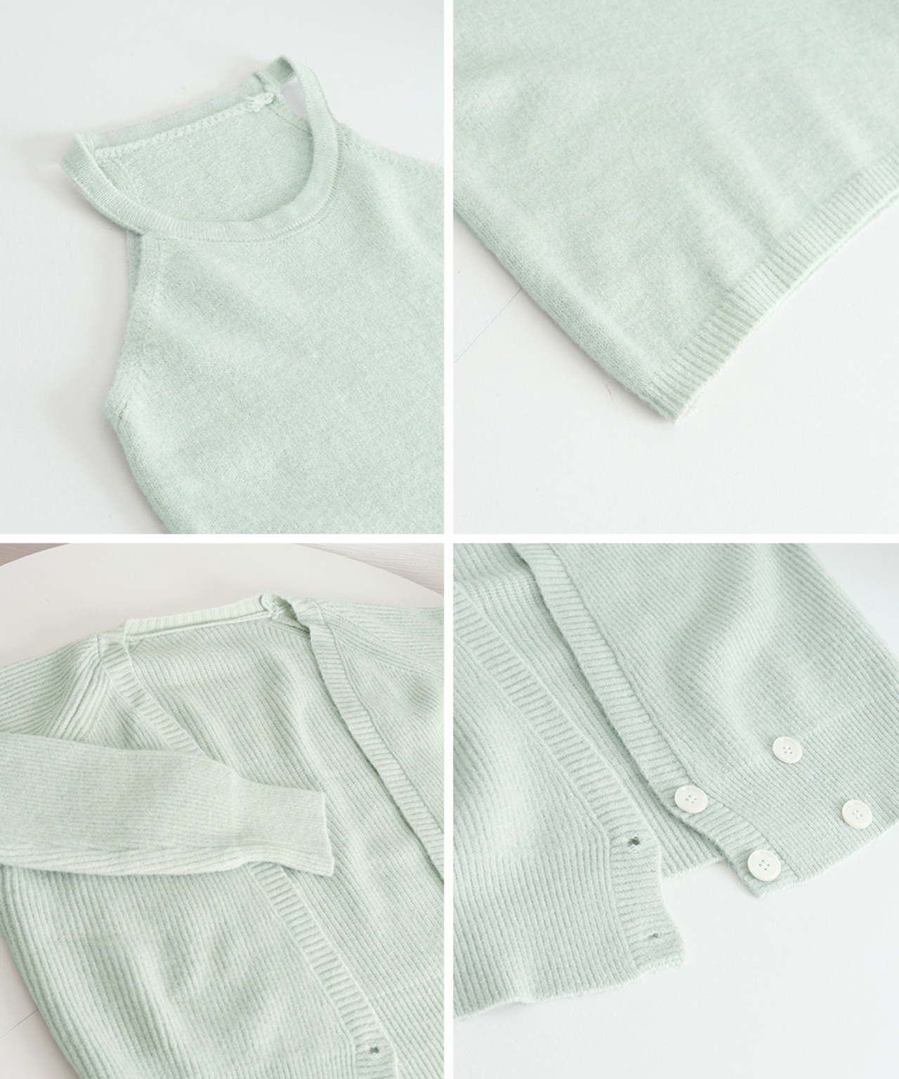 柔らかな風合いが魅力のカーディガンとニットキャミソールのセットアイテム。