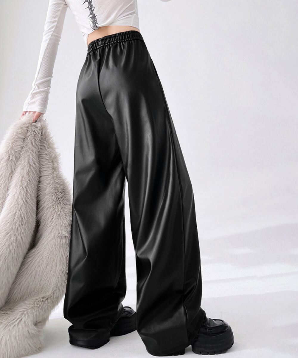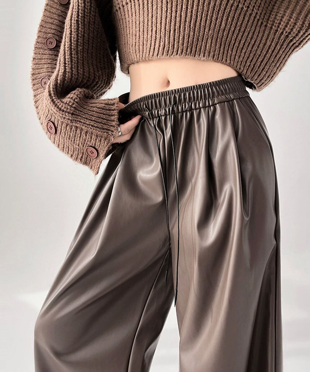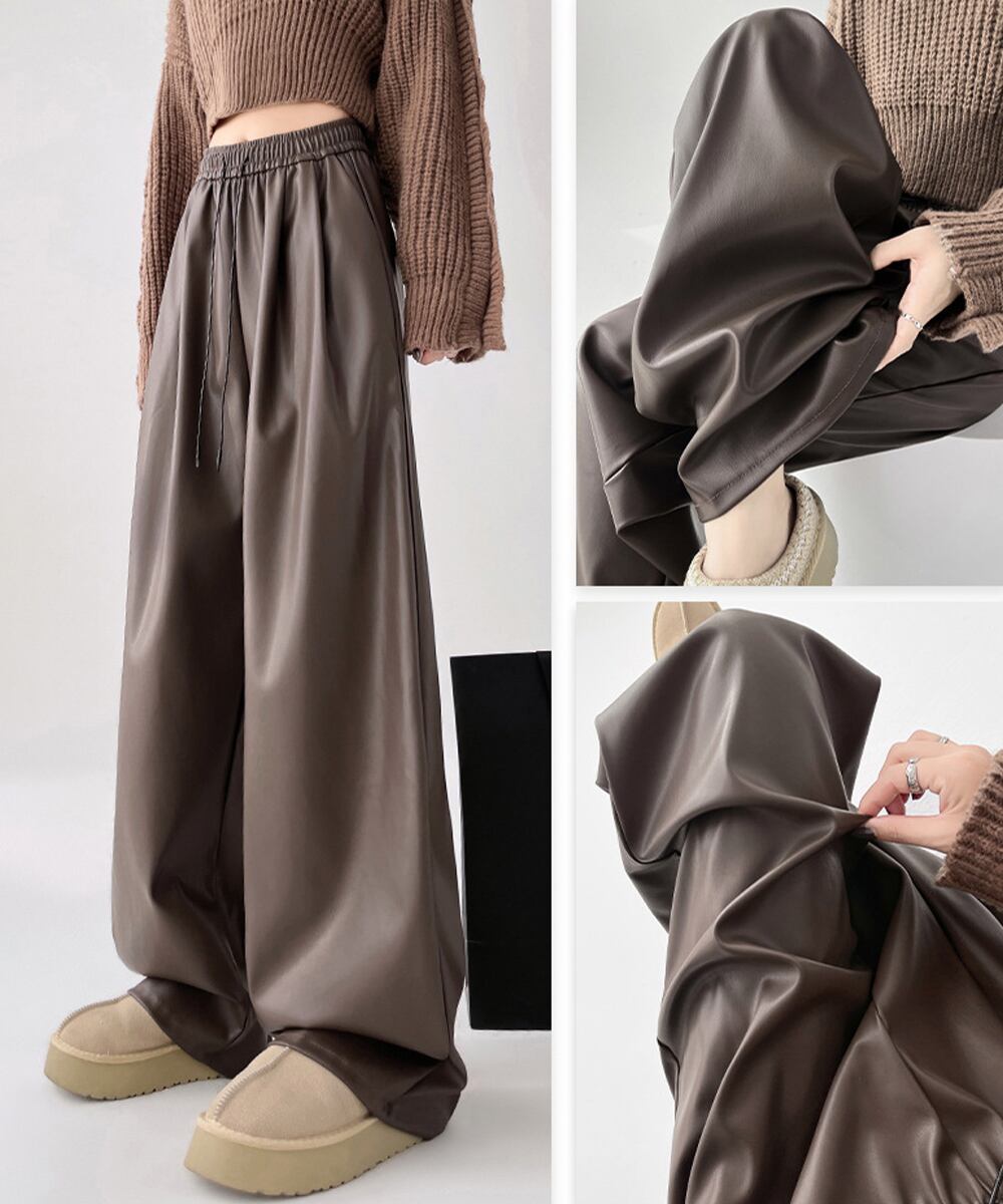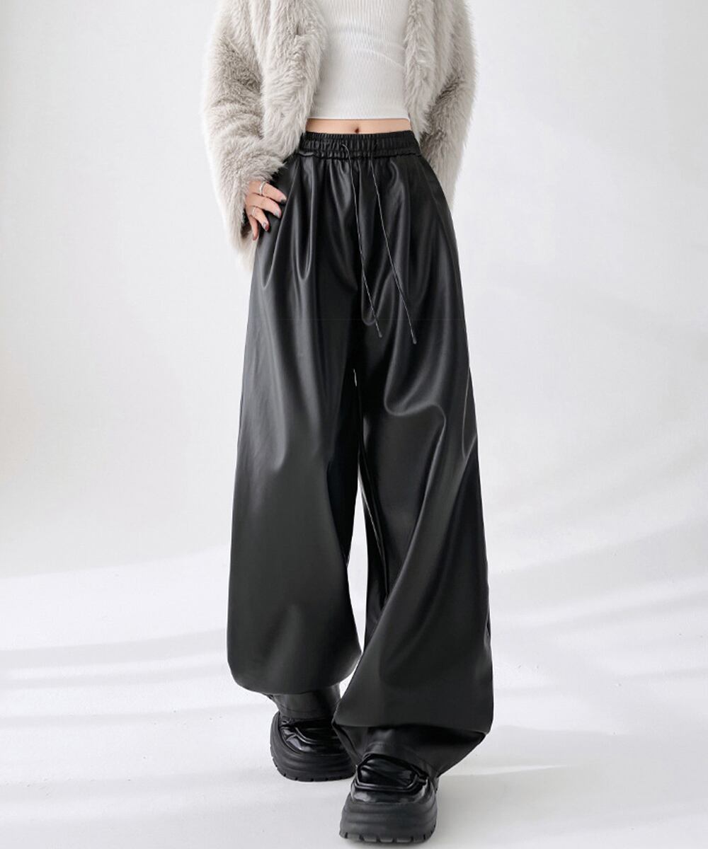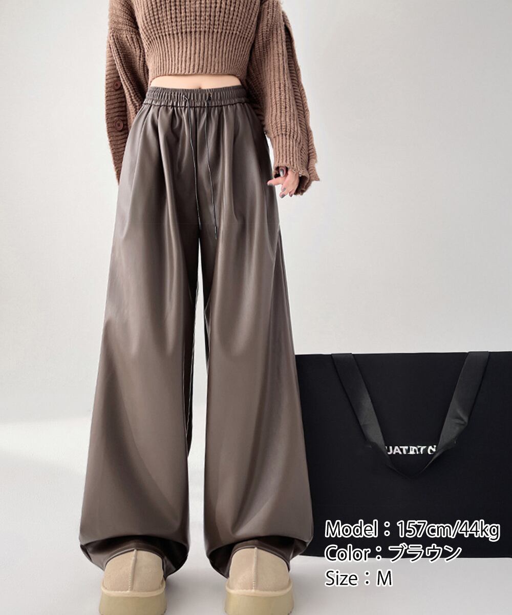 【日本倉庫からの発送】 フェイクレザーワイドパンツ ハイウエスト #[92HUOLI-001_23800]【送料込み】【251029】
