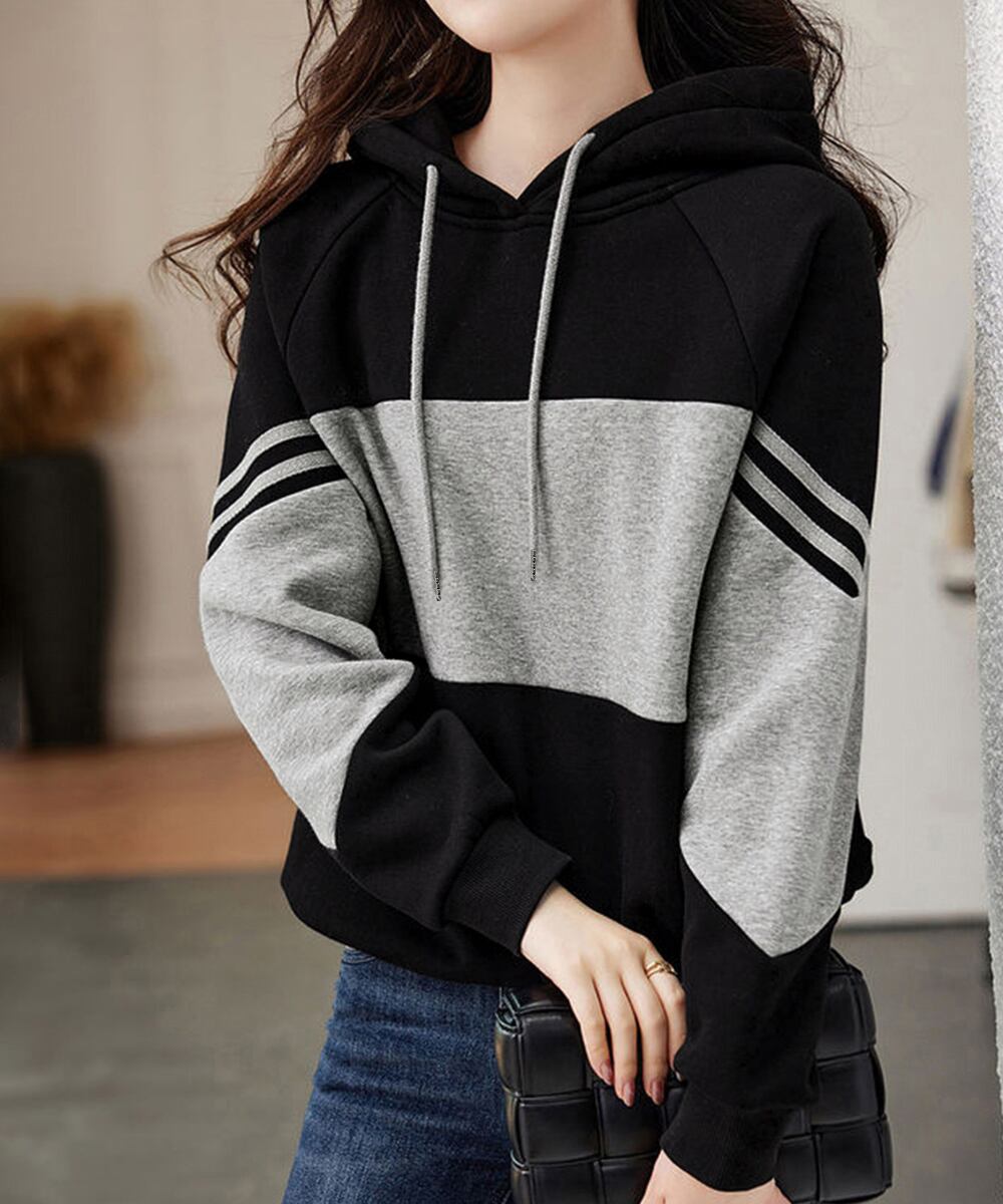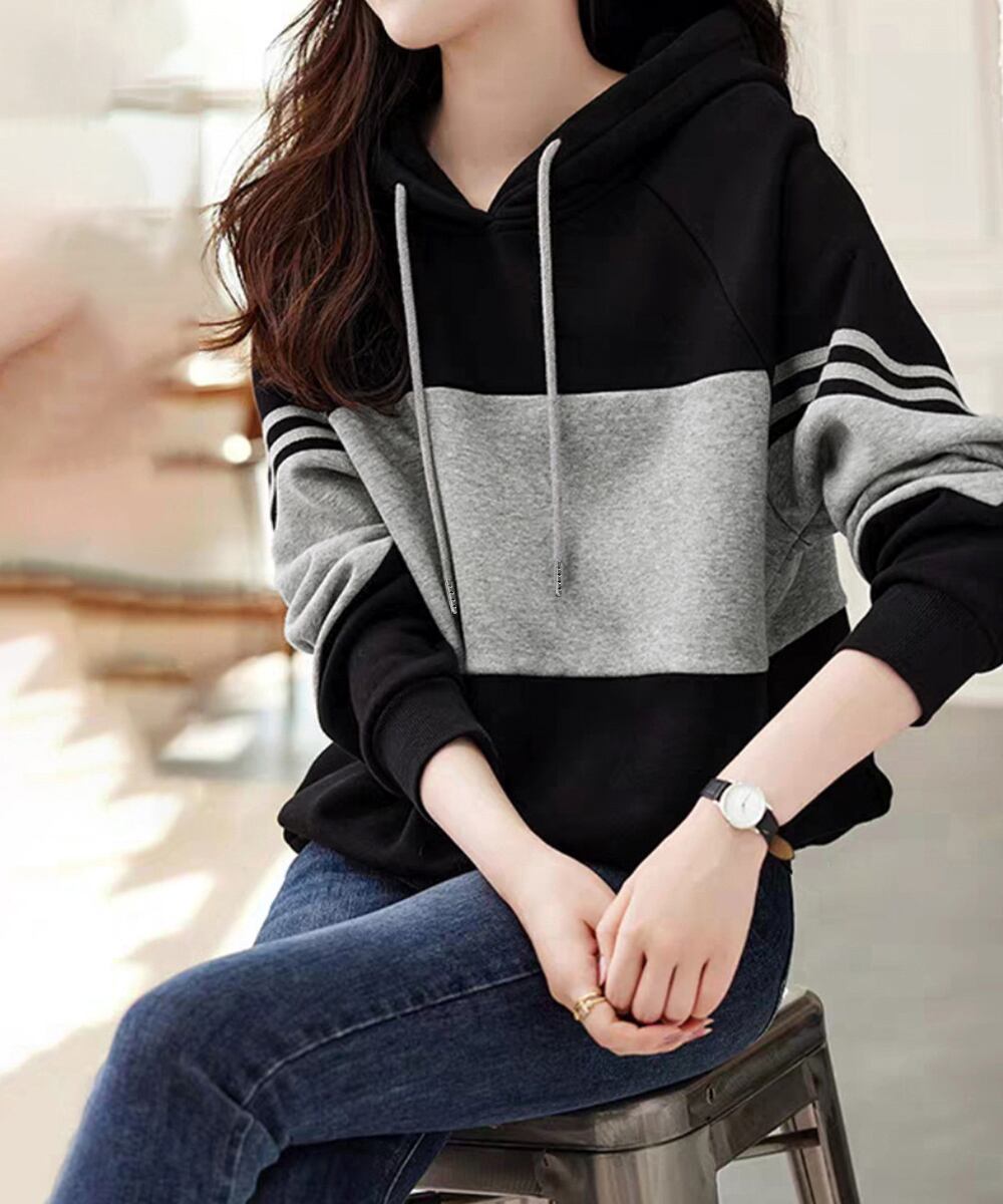 着やせ長袖トップス フードスウェット秋 韓国風秋服ゆったり