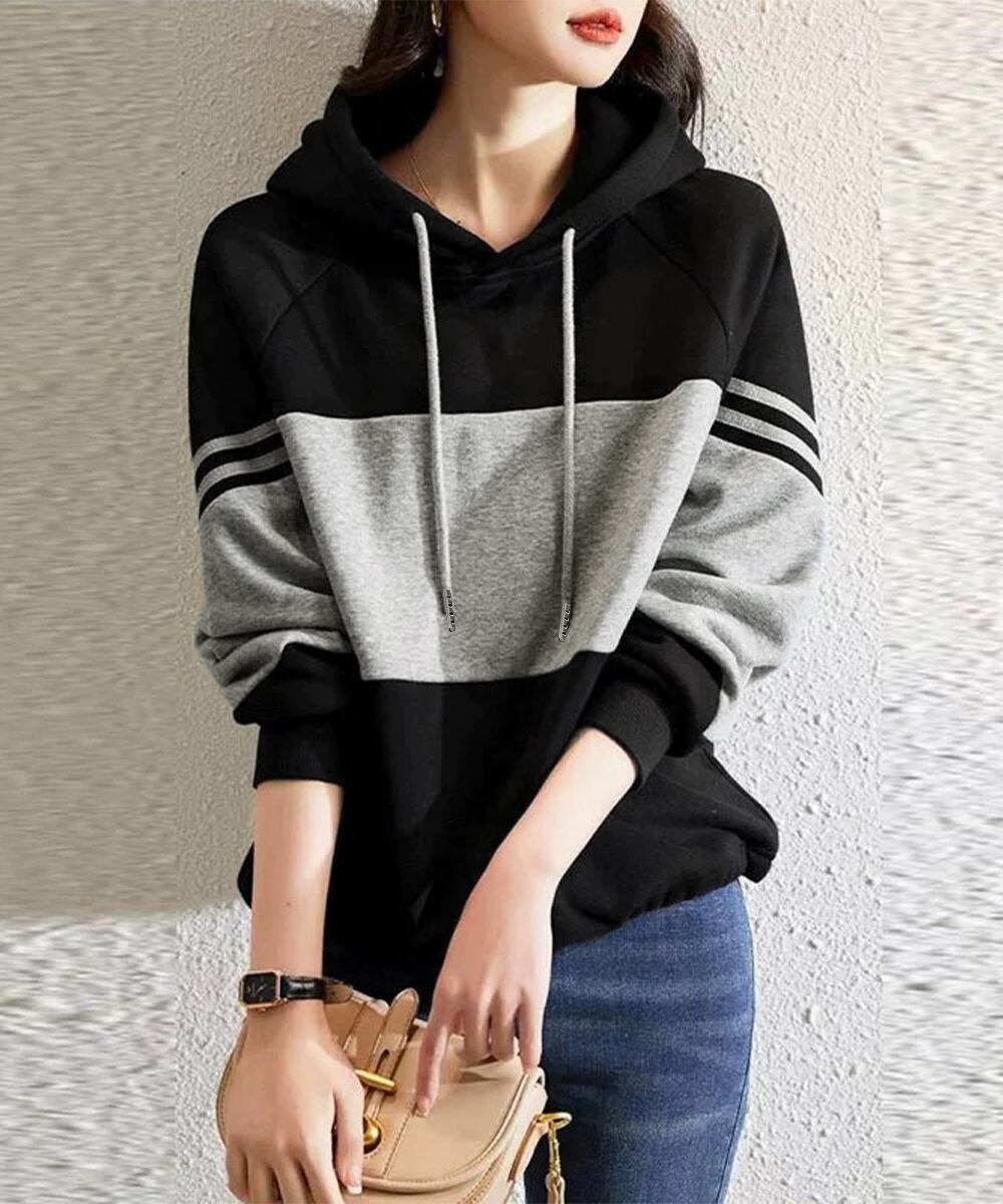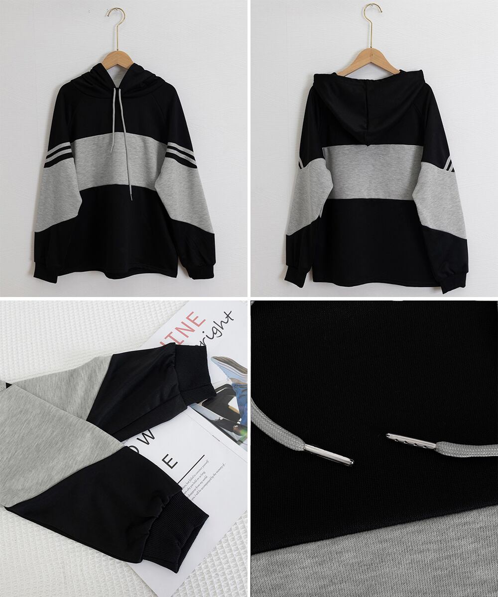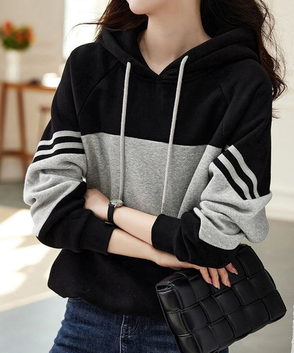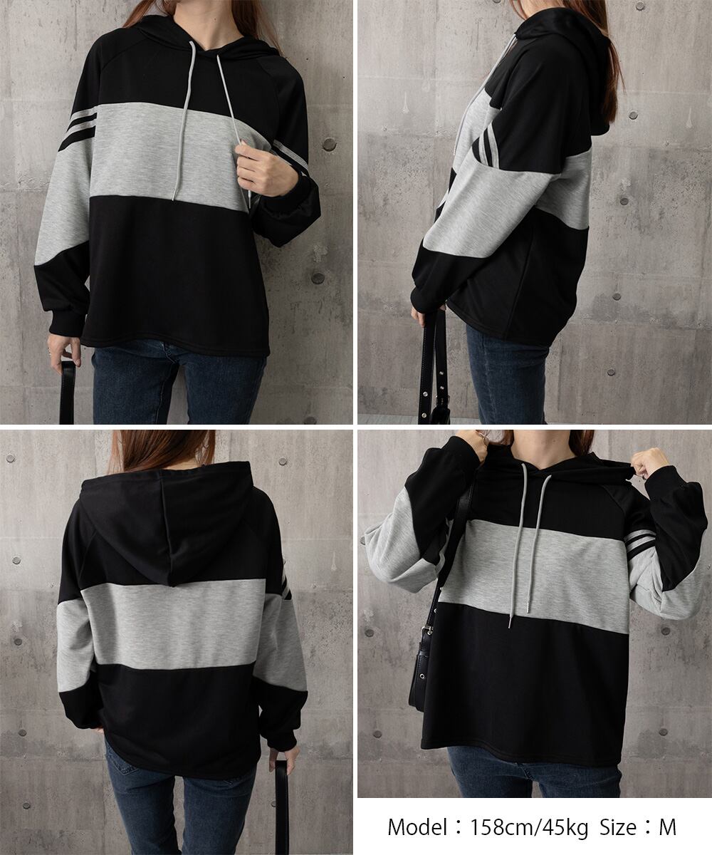 抜け感トレーナー体型カバー カジュアルトップス 大人可愛いパーカー バイカラーフーディーおしゃれ運動着 秋冬プルオーバー