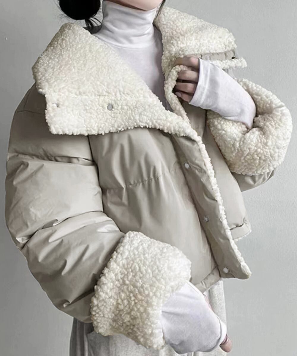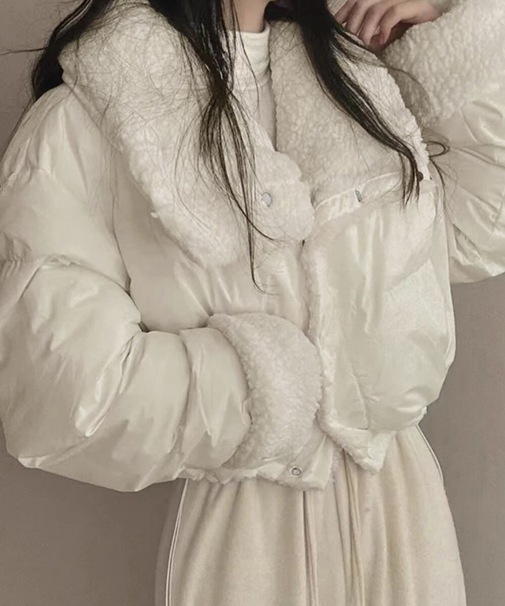 クロップド エコダウンジャケット ショート丈中綿コートレディース ふわふわ ボアアウター暖かい 韓国風 防寒冬服ゆったり