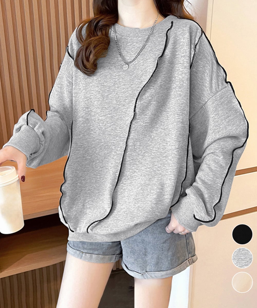 【日本倉庫からの発送】 ステッチスウェット ゆったり トレーナー #[24TPS-066_23000]【送料込み】【251029】