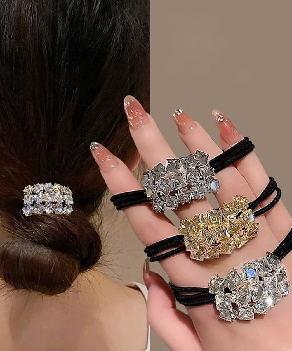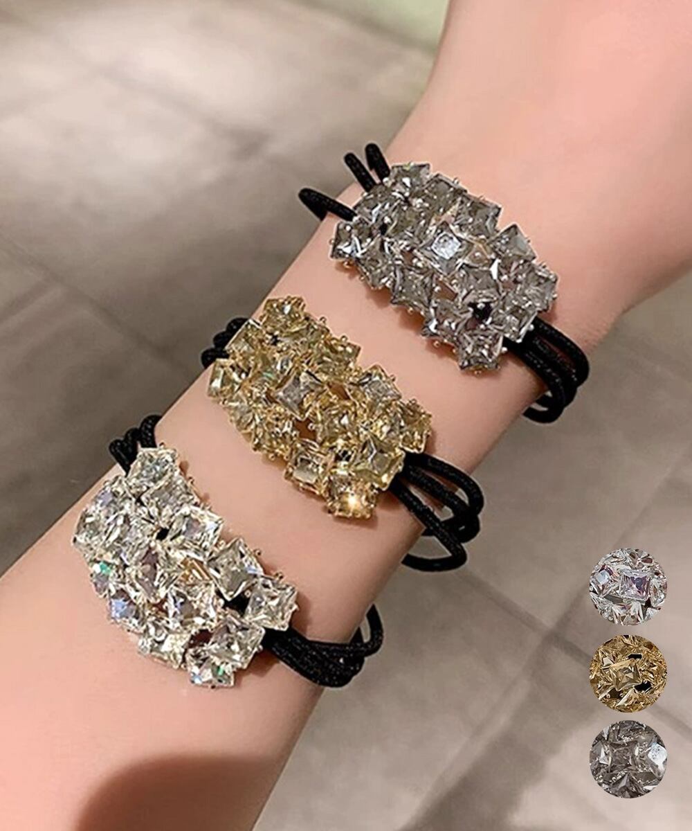 ヘアアクセサリーヘアゴム ヘアポニー ラインストーンビジュー 幾何学モチーフ 髪飾りヘアアレンジグッズ 韓国ファッション
